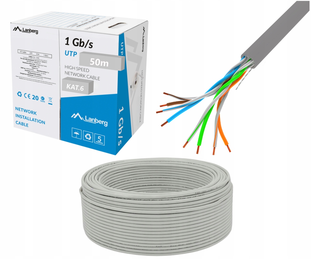 KABEL PRZEWÓD SIECIOWY LAN SKRĘTKA RJ45 UTP KAT.6 CAT.6 50M LANBERG
