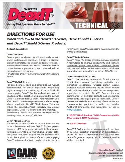 - руководство пользователя и информация о DeoxIT®
