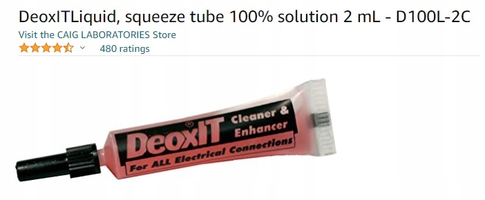 DeoxIT — уникальное решение в виде жидкого концентрата, которое при использовании улучшает проводимость и обеспечивает длительную защиту разъемов или контактов, очищая их от нагара, жира и любых загрязнений. Прекрасно удаляет налет с посеребренных вилок.