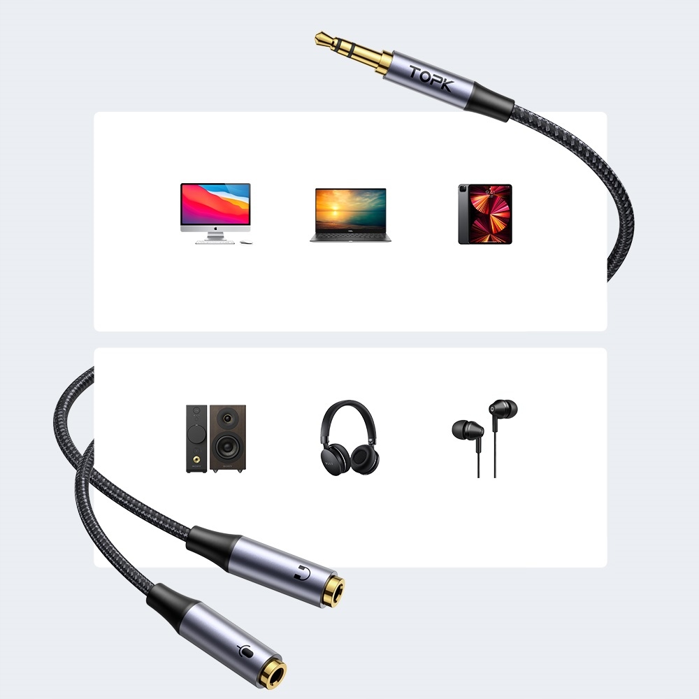 КАБЕЛЬНЫЙ РАЗДЕЛИТЕЛЬ МИНИ-ДЖЕК МИКРОФОН НАУШНИКИ AUX TOPK
