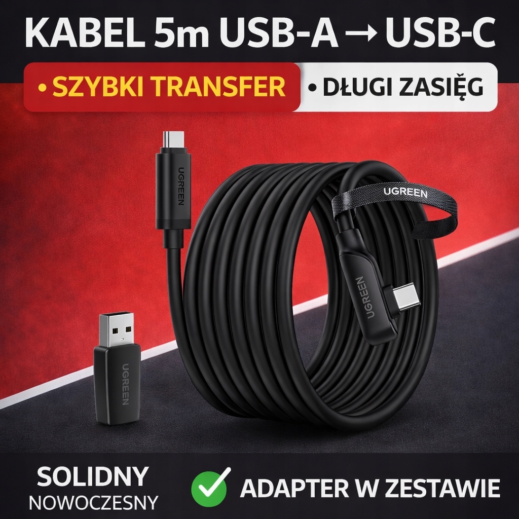 КАБЕЛЬ SYNTECH 5 М ДЛЯ META QUEST 3 2 PRO PICO 4 USB-C 5 ГБ/с + АДАПТЕР USB 3.0