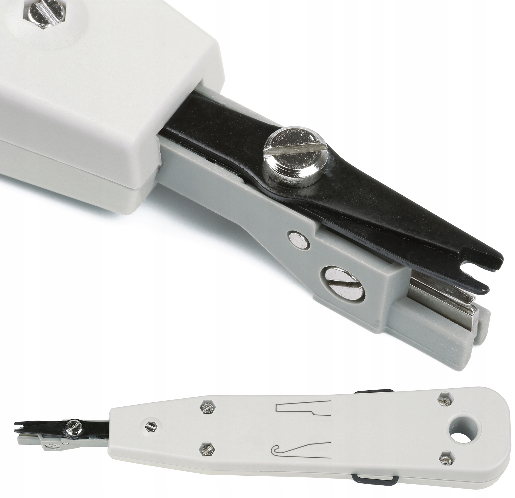Простой, практический инструмент для удаления внешнего покрытия из кабелей STP и UTP и затягивания вен в терминале 110. Идеально для получения поворота в сокетах