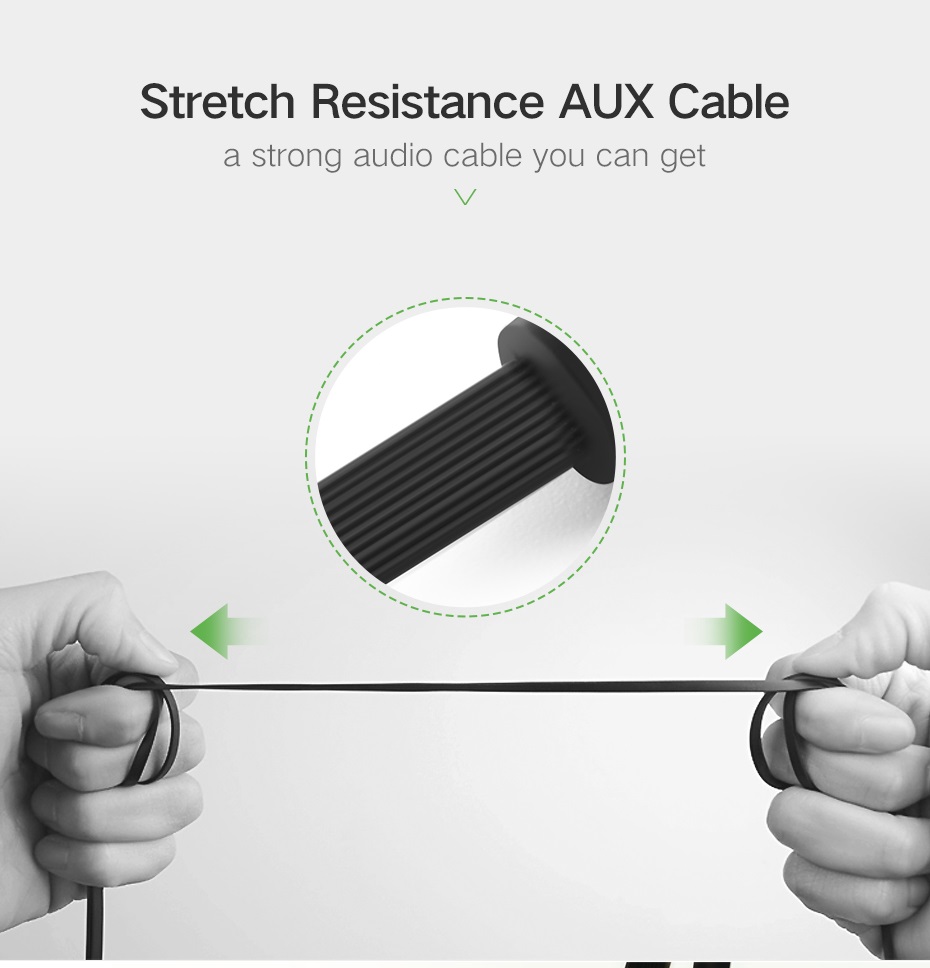 Вспомогательный кабель UGREEN также обеспечивает механическую прочность, а плоское поперечное сечение кабеля и материал (TPE) предотвращают его спутывание.