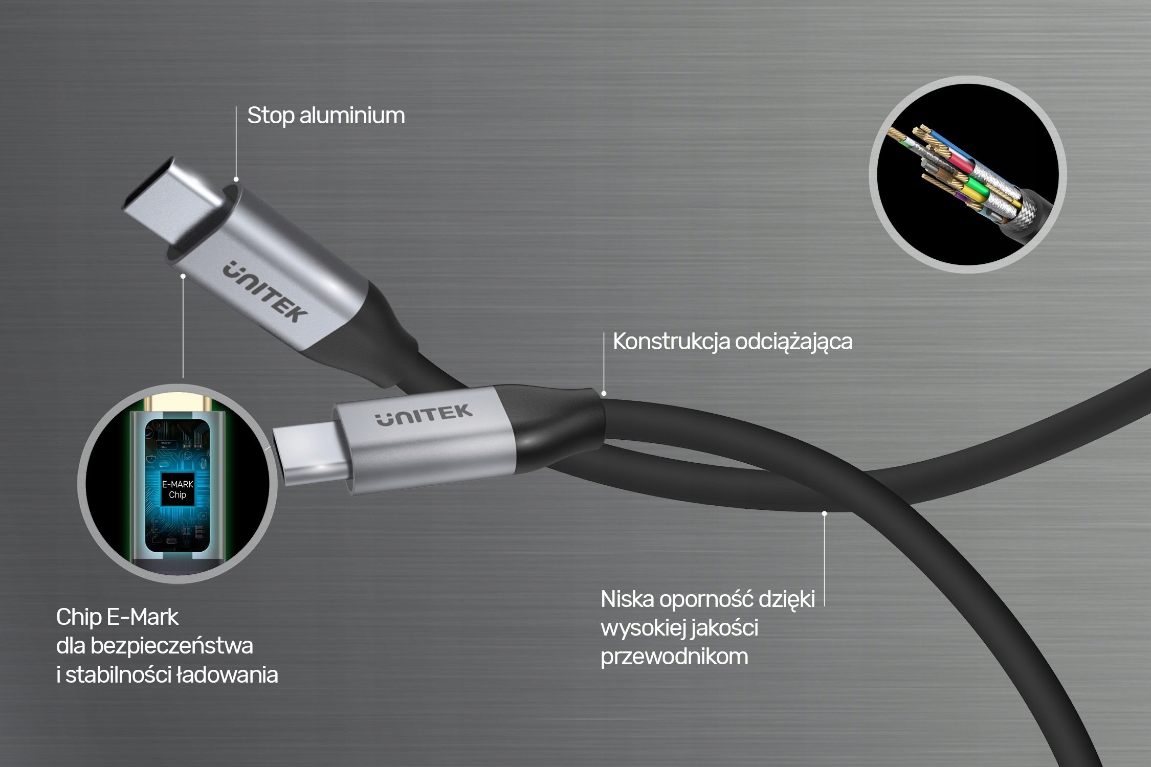 Вилки кабеля заключены в прочные алюминиевые корпуса, а внутри находится чип E-MARK, который необходим в таких прочных кабелях и отвечает за выбор параметров зарядки, соответствующих устройству. Зарядка и синхронизация происходят быстро, стабильно и, главное, безопасно.