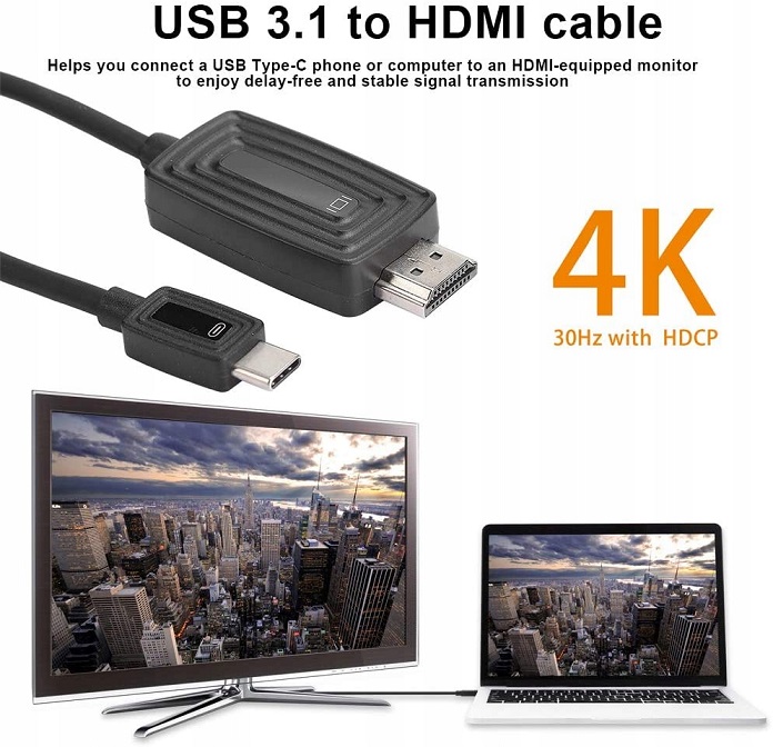 Кабель USB-C — HDMI позволяет использовать порт USB Type-C на вашем компьютере для непосредственного отображения изображения на экране HDMI без необходимости использования сложных адаптеров и ключей или адаптеров.