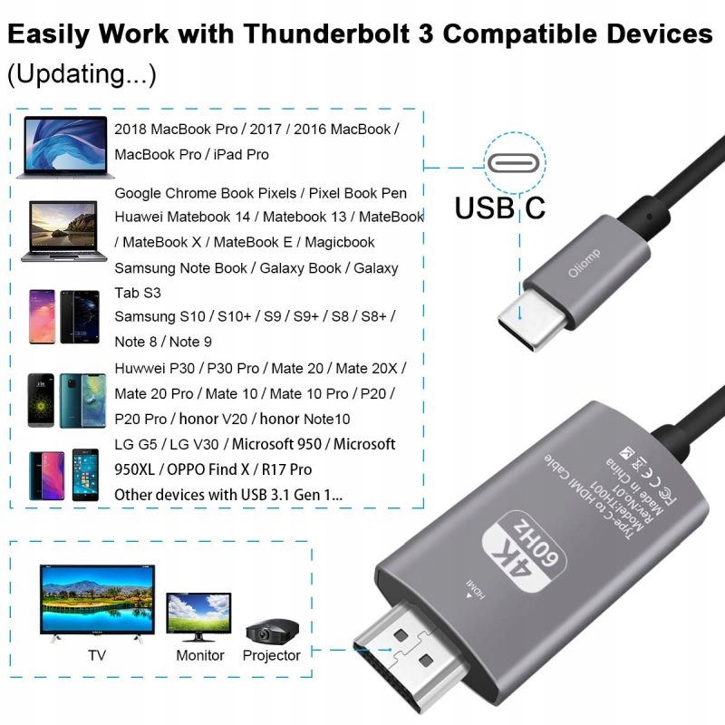Кабель работает с такими устройствами, как: Samsung S8, S8+, S9, S9+, S10, S10+, Note 8. , Примечание 9; LG G5, G6, В20, В30; HTC 10, HTC Ультра; Lumia 950, 950XL, Huawei P10, P20, P20 Pro, P30, P30 Pro, Mate 10, Mate 10 Pro, Mate 20, Mate 20X, Mate 20 Pro; OnePlus 3 и 5. Macbook Pro 2016, Macbook Pro 2017, HP Spectre, HP Pavilion, Huawei Matebook, ChromeBook Pixel, Dell XPS 13, XPS 15, Lenovo Yoga 5 Pro и другие модели, совместимые с разъемом USB-C и поддержкой DP.< /п>