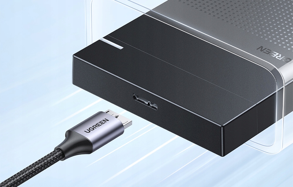 Кабель UGREEN отличается интерфейсом Micro-B 3.0/USB-C. Это означает, что вы можете использовать его с различными устройствами, включая ноутбуки, смартфоны, камеры, а также внешние жесткие диски. Благодаря этому данное изделие становится очень универсальным и практичным во многих ситуациях.