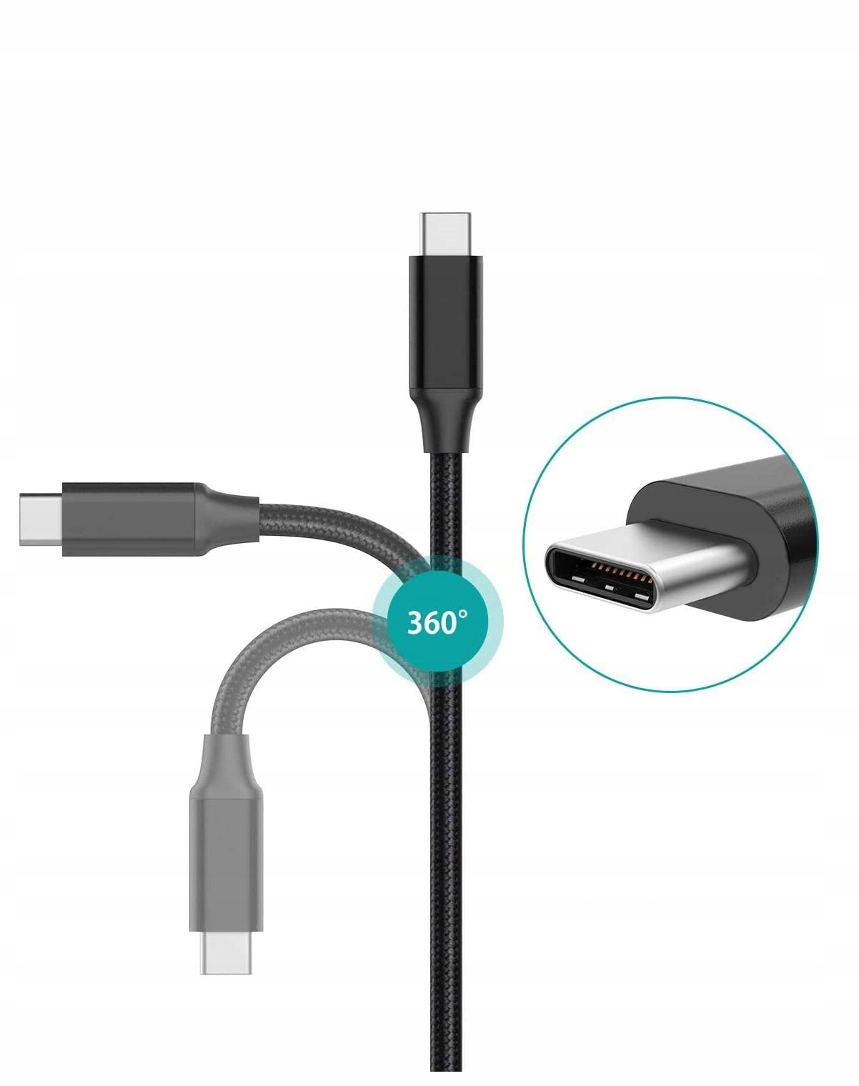 Кабель питания USB-C — USB-C, 20 Гбит/с, 100 Вт, длина 200 см (2 метра), для зарядки и передачи данных (AV).