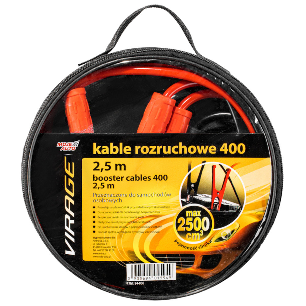 Соединительные кабели VIRAGE 400 | 2,5мпредназначен для запуска двигателей легковых автомобилей и грузовых автомобилей с максимальным объемом двигателя до 2500см³