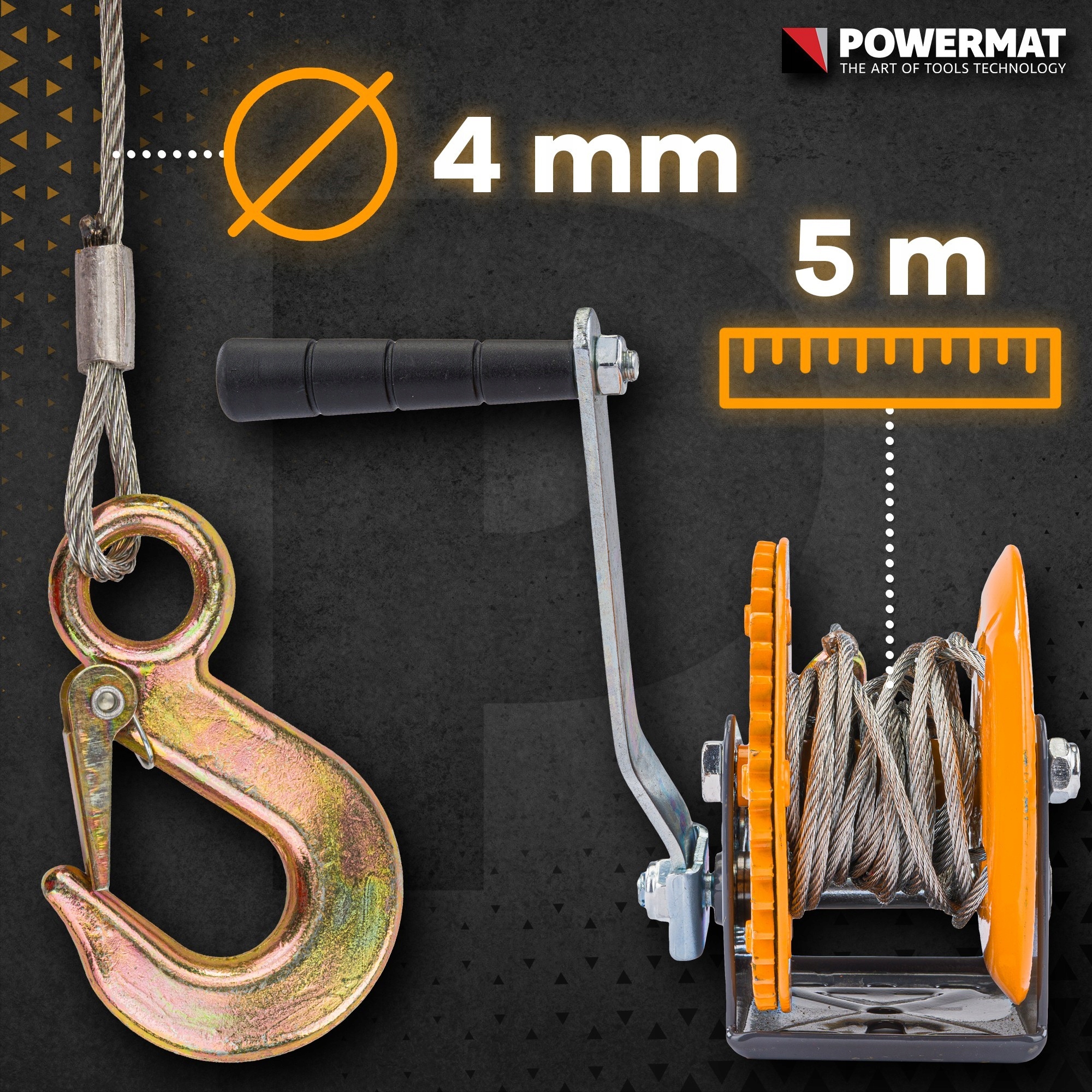 ⭐️ Лебедка с лебедкой с лебедкой от POWERMAT | 454 кг | 5 м / 4 мм |