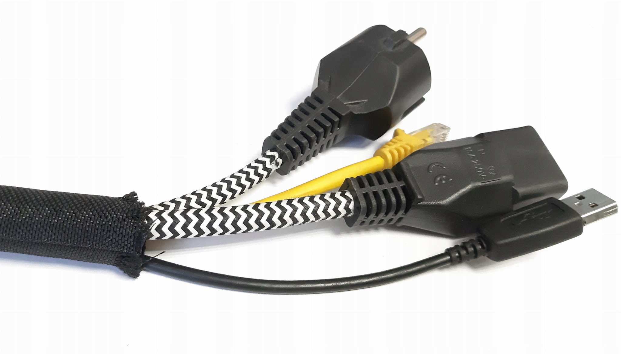 - Продольная боковая прорезь оплетки позволяет это сделать. можно открывать и надевать кабели без необходимости их расстегивания, конструкция оплетки означает, что она закрывается и оборачивается вокруг кабелей, без необходимости использования дополнительных крепежных элементов, таких как липучки, ленты и т. д.