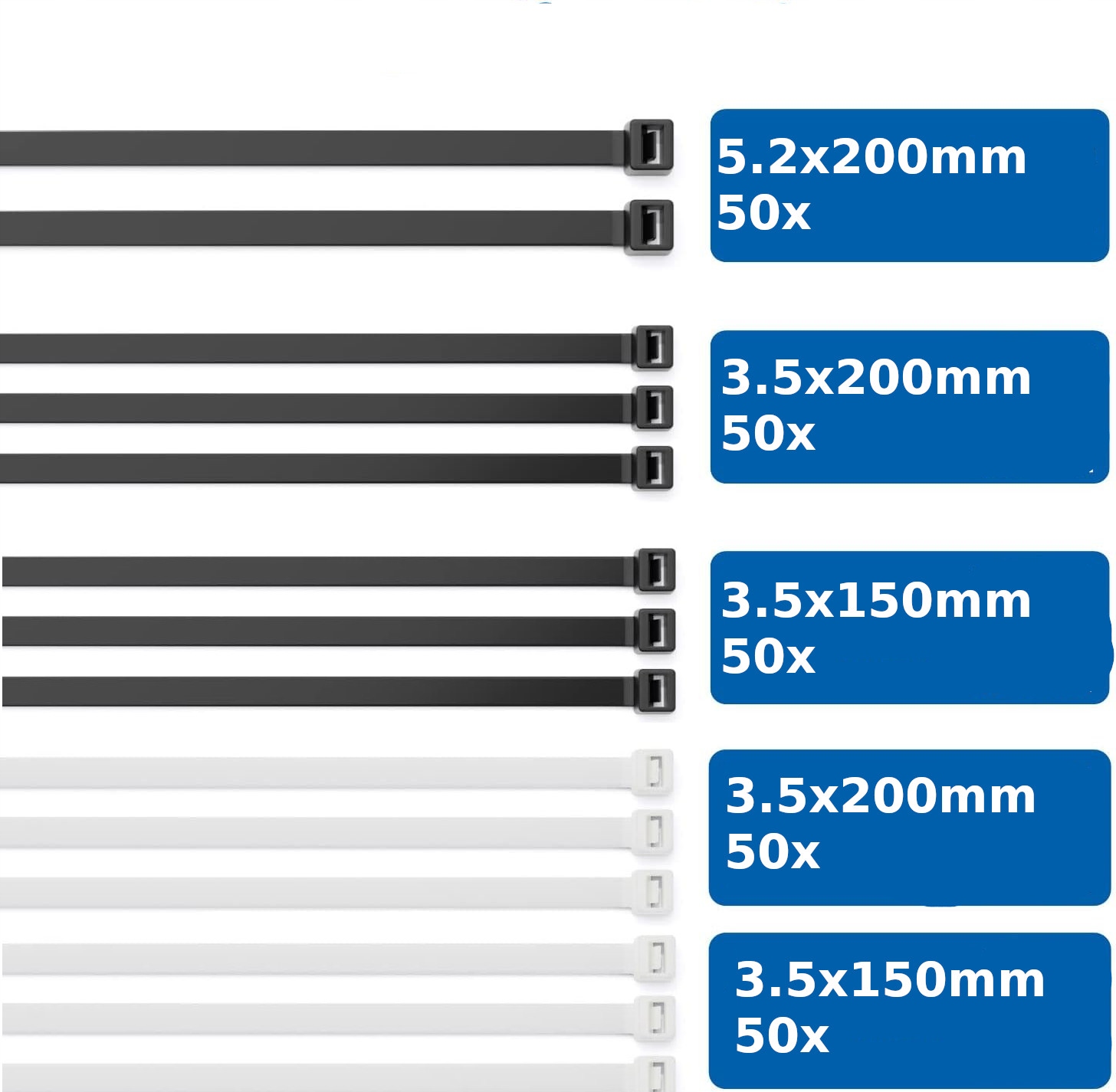 КАБЕЛЬНЫЕ Стяжки Стяжки 250 ШТ 5,2х200 3,5х200 3,5х200 3,5х150 3,5х150 ЧЕРНЫЕ И БЕЛЫЕ
