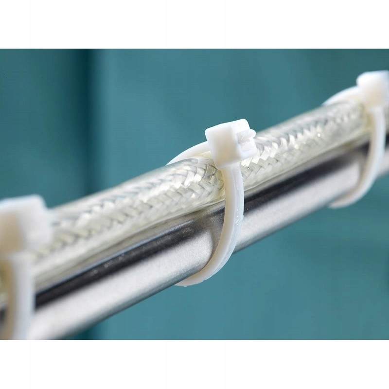 Стяжки-зажимы изготовлены из высококачественного гибкого материала, устойчивого к погодным условиям и ультрафиолетовым лучам - что позволяет использовать их в любых условиях, как внутри, так и снаружи помещений. Ремешок можно затянуть вручную или с помощью специальных инструментов.