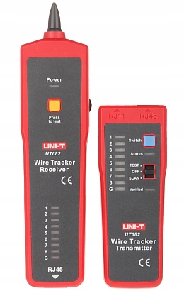Тестер UT-682 проверяет правильность концевой заделки кабеля и порядок расположения проводов в вилках RJ-45 и RJ-11. Устройство помогает найти телефон, интернет, электроэнергию и провода под напряжением.