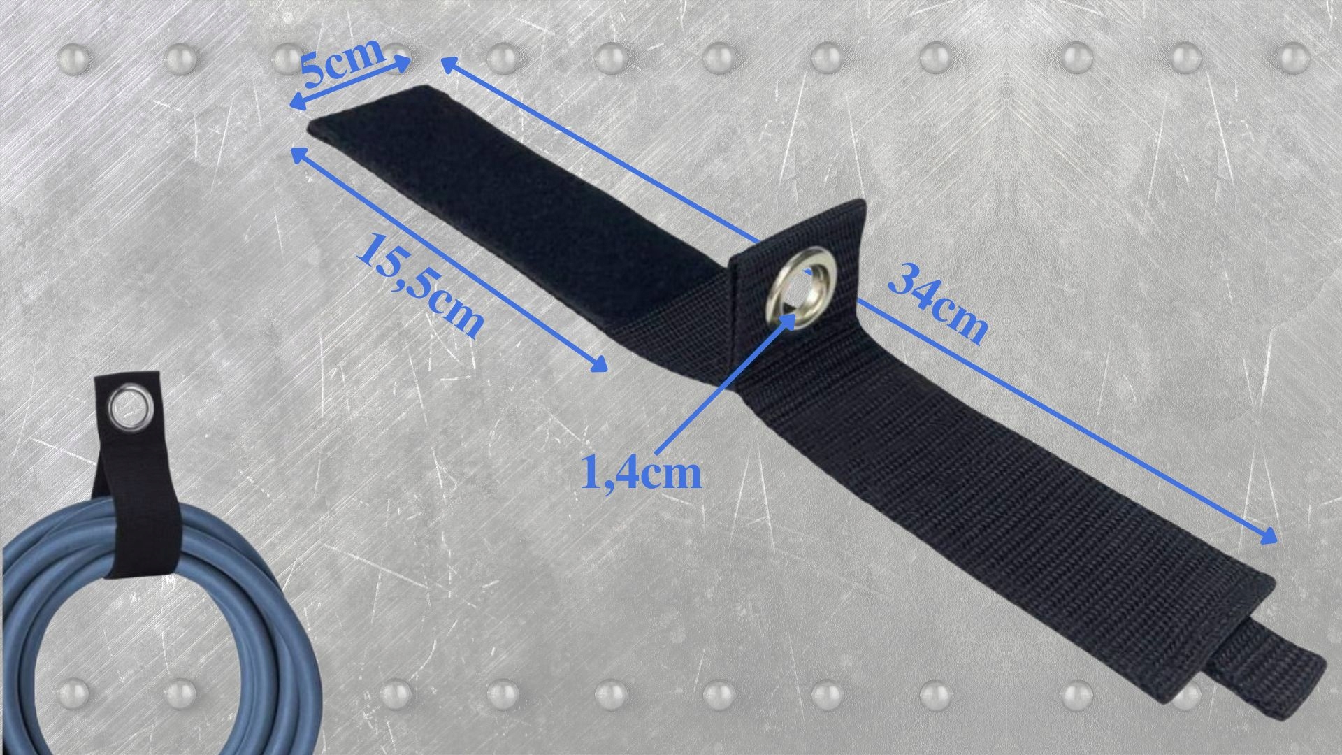 - ✅Размер : 34х5 см (длина х ширина), диаметр отверстия 1,4 см, длина липучки 15,5 см.
