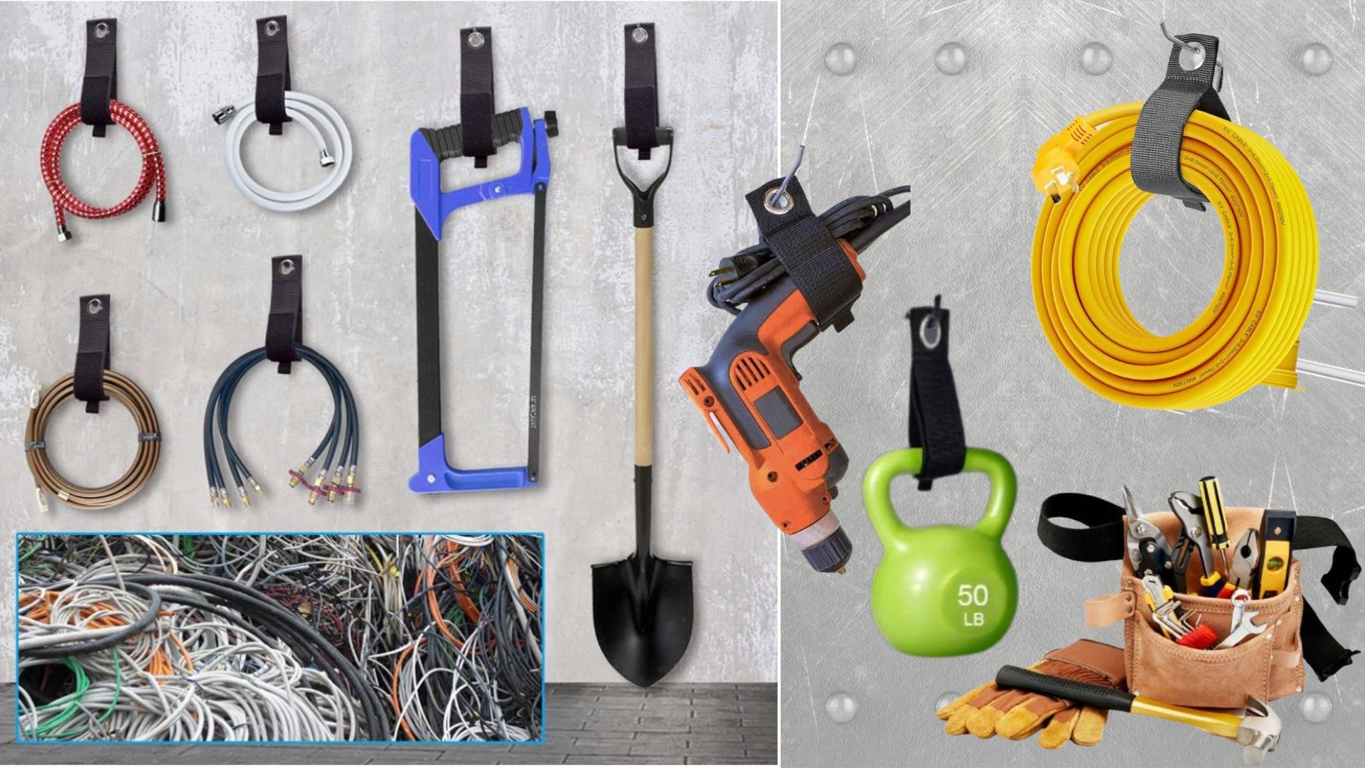- ✅ Благодаря им вы можете не только подключать и организовывать кабели, шланги и многое другое , но и благодаря металлическому держателю их можно повесить, например, на стену в гараже или дома