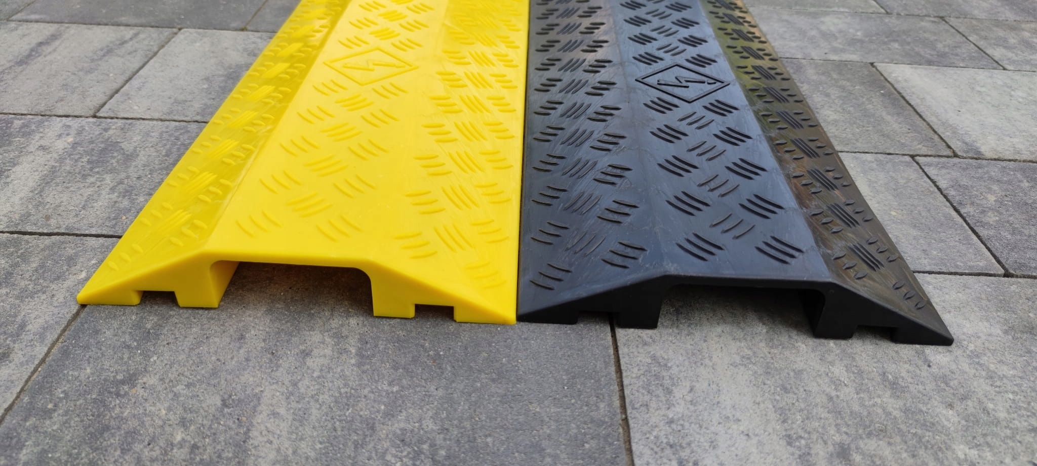 Черный кабельный пандус для офиса и отеля представляет собой безопасное и практичное укрытие для электрических кабелей. Благодаря этому можно обеспечить безопасность в местах повышенного риска. Структура кабельного порога состоит из специального пластикового композита с хорошо заметной текстурой и противоскользящими свойствами.