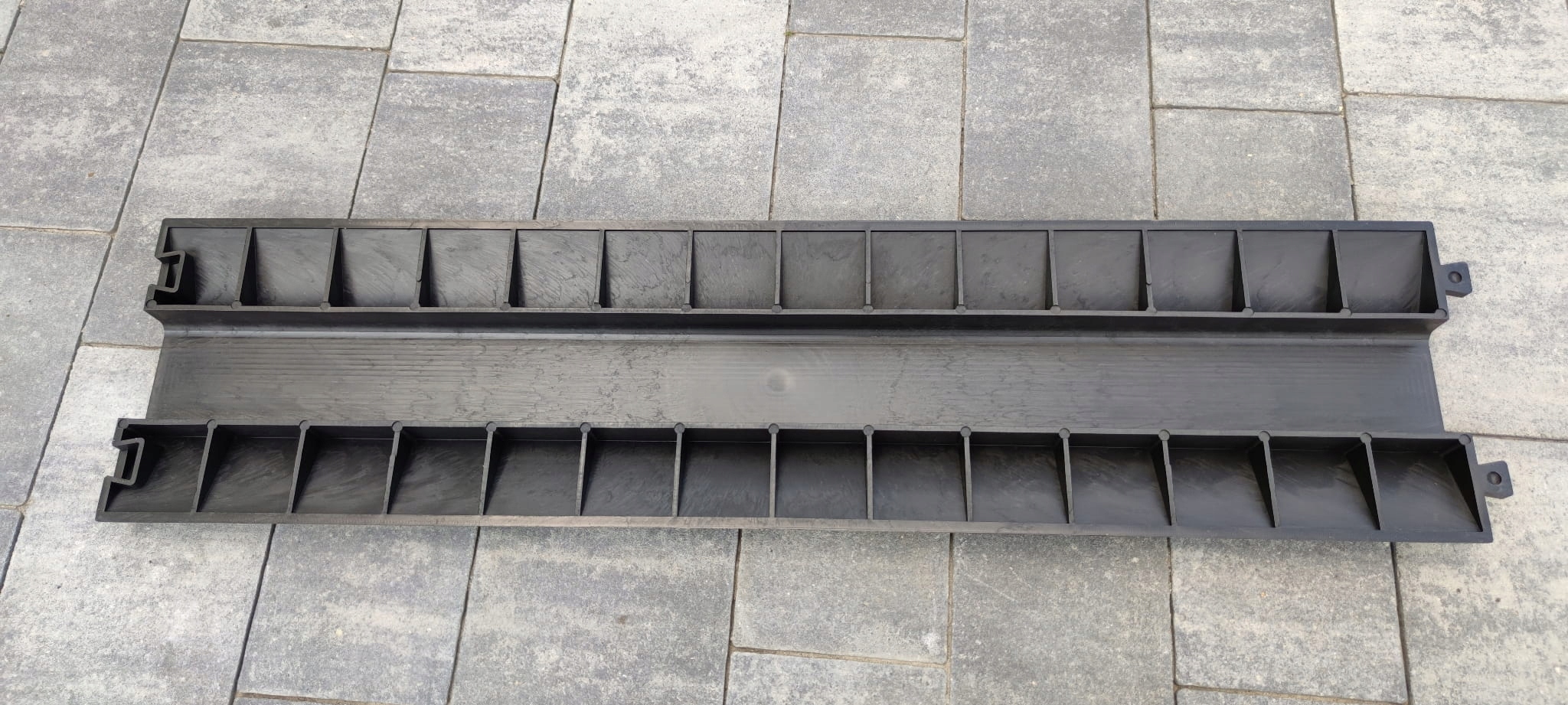 Система соединения работает по принципу шпунта и паза, V-образное соединение предотвращает случайное отсоединение чехлов автомобилями и прохожими.