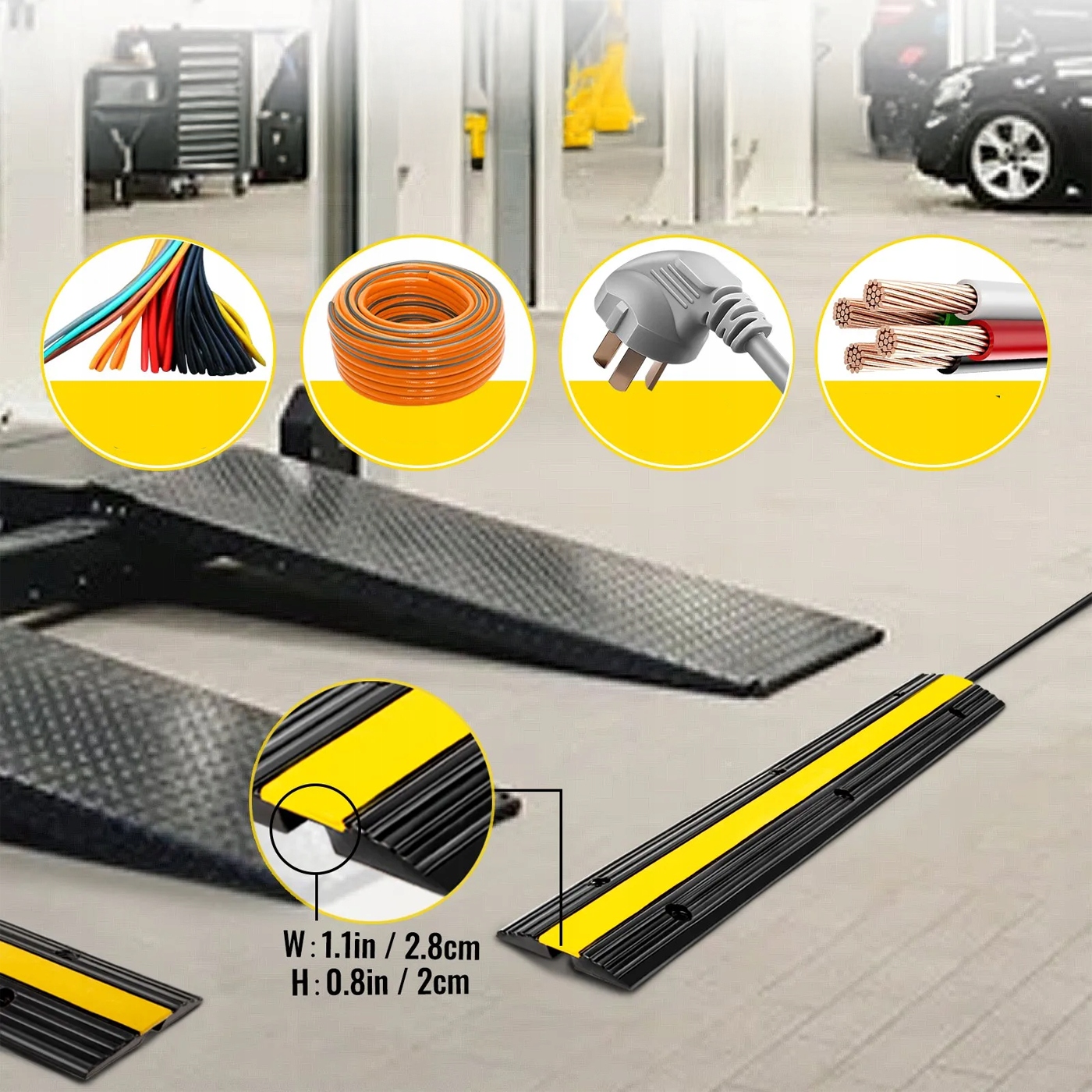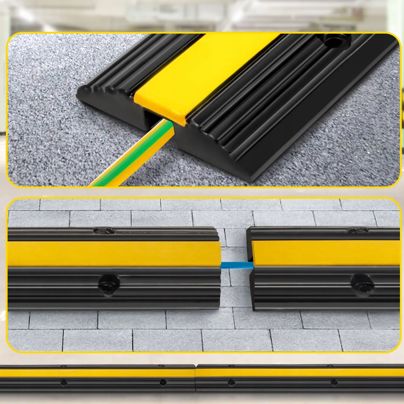 Защитите свои провода, шланги и кабели от механических повреждений, вызванных движением пешеходов и грузовых автомобилей. Эта профессиональная система кабельных пандусов длиной 102 см (включая защиту более 4 метров) является идеальным решением для прокладки кабелей на мероприятиях, строительных площадках, парковках и складах. Благодаря ярко-желтому и черному цветам изделие также служит «лежачим полицейским», заставляя транспортные средства двигаться с безопасной скоростью и увеличивая видимость препятствий даже в темноте.