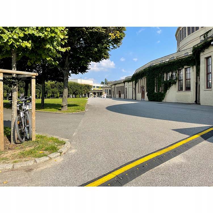 Протектор OWS оснащен резными пазами (противоскользящая поверхность). Желтая полоса посередине и светоотражающие знаки по бокам делают порог видимым с большого расстояния. На кабельную разводку нанесена рампа.