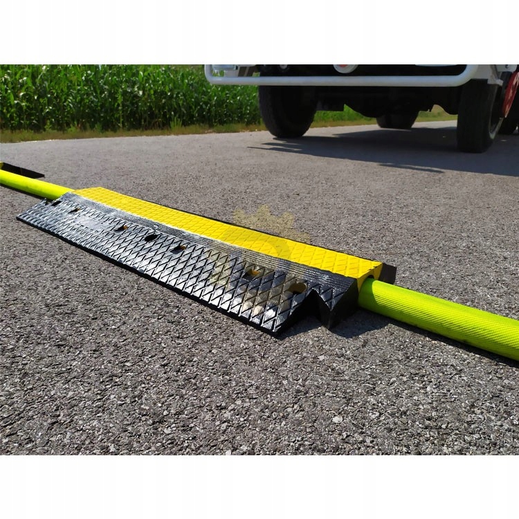 Тросовые пороги изготовлены из прочного ПВХ, что позволяет размещать их в местах с интенсивным пешеходным движением и на дорогах с транспортным средством. Материал устойчив к истиранию и механическим воздействиям. Кабельный пандус имеет отверстие диаметром 60 мм и защищает кабели и пожарные рукава от повреждений.