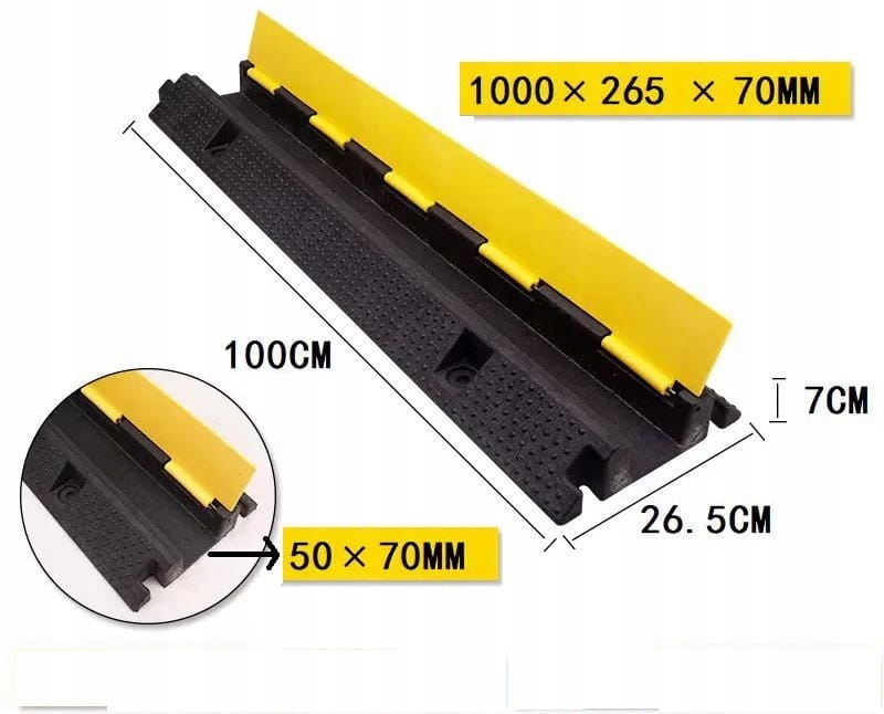 Надежное качество изготовления позволяет использовать его на открытом воздухе, идеально подходит для концертов или мероприятий на открытом воздухе. Одноканальный кабельный пандус имеет длину около 100 см, а система ввода позволяет соединить множество частей, чтобы создать длинный коридор для кабелей. Единый кабельный лоток имеет размеры 7 х 5 см, что позволяет спрятать внутри порога даже более толстые пучки кабелей или тонкие трубы.