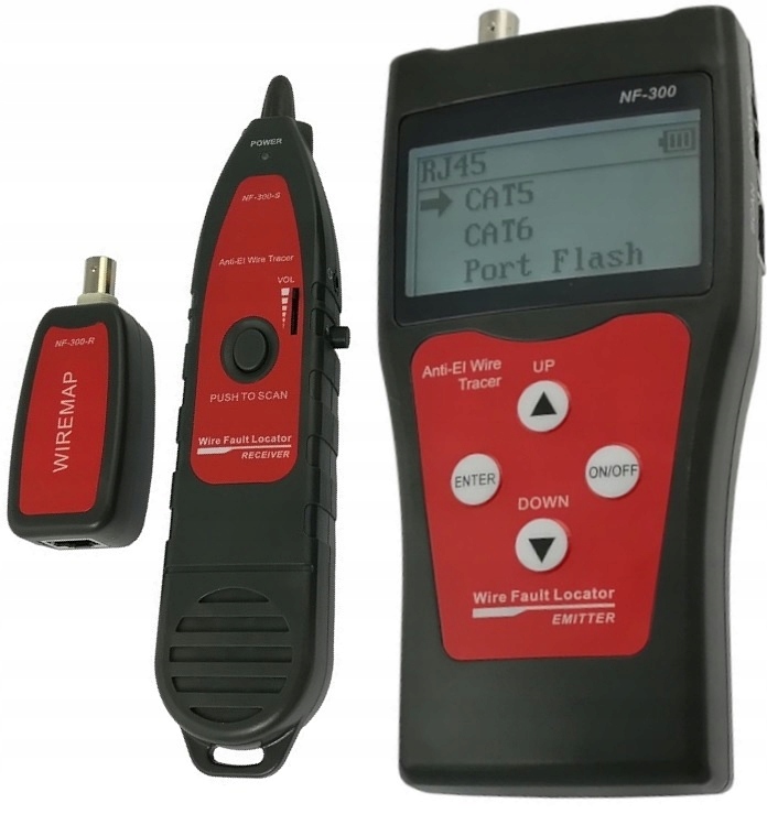 NF-300 имеет встроенный тональный генератор (130 кГц), который используется для поиска кабеля. Работая с включенным в комплект искателем/сканером, он позволяет быстро найти местоположение кабеля в стене или его положение в немаркированном жгуте.