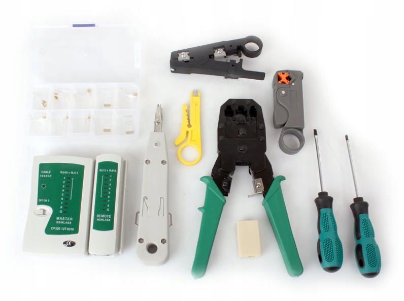 КАБЕЛЬНЫЙ ТЕСТЕР НАБОР ОБЖИМЦЕВ RJ45 СЪЕМНИК КОРПУСА