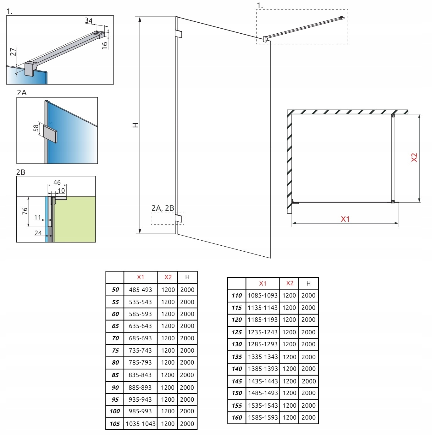 - ВНИМАНИЕ! Стандартно кабины предназначены для установки на душевой поддон определенных размеров, и эти размеры указаны в названии кабины или ее части. Реальные габаритные размеры кабины немного меньше номинальных, указанных в названии статьи. Если вы планируете монтировать кабину непосредственно на полу, обратите внимание на габаритные размеры (Х1, Х2) и размеры до оси стекла (Y1, Y2), которые указаны на техническом чертеже