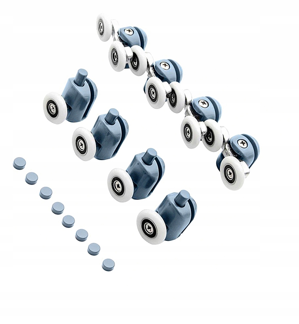 В предлагаемом комплекте всего восемь душевых роликов с колпачками. Четыре верхних ролика с двумя колесами и четыре нижних ролика с одним колесом.