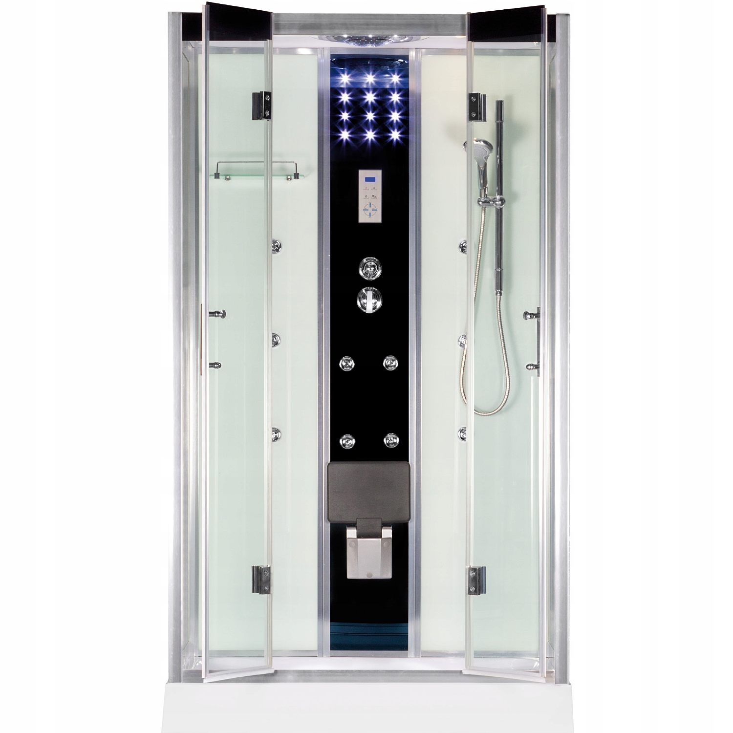 Кабина размерами 120х80х217 см с душевым поддоном Оборудование: