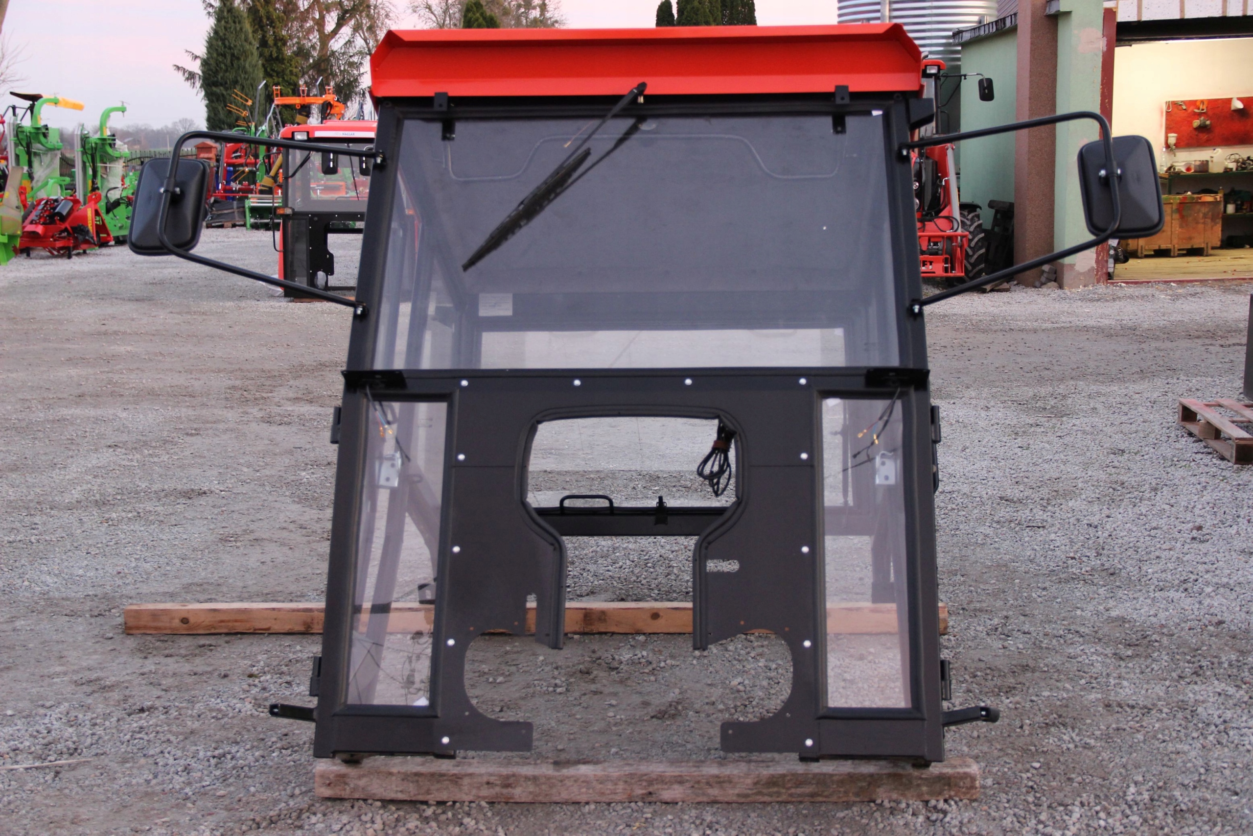 Вся продукция изготовлена из стальных профилей, что обеспечивает соответствующую жесткость и долговечность конструкции, гарантируя безопасность пользователя. Внутренняя часть кабины обита и герметична, что повышает комфорт пользователя. Окна изготовлены из закаленного стекла и оснащены специальными резиновыми прокладками, которые гасят вибрации и герметизируют внутреннюю часть. Каждая кабина имеет декларацию соответствия ЕС и сертификат. Кабины оснащены передним стеклоочистителем, зеркалами и электроустановкой, адаптированной к данному трактору. Каждая кабина по габаритам соответствует данному типу трактора, а также добавлен набор крепежных элементов, позволяющих монтировать кабину на трактор. А также элементы, герметизирующие и защищающие салон от попадания пыли внутрь.