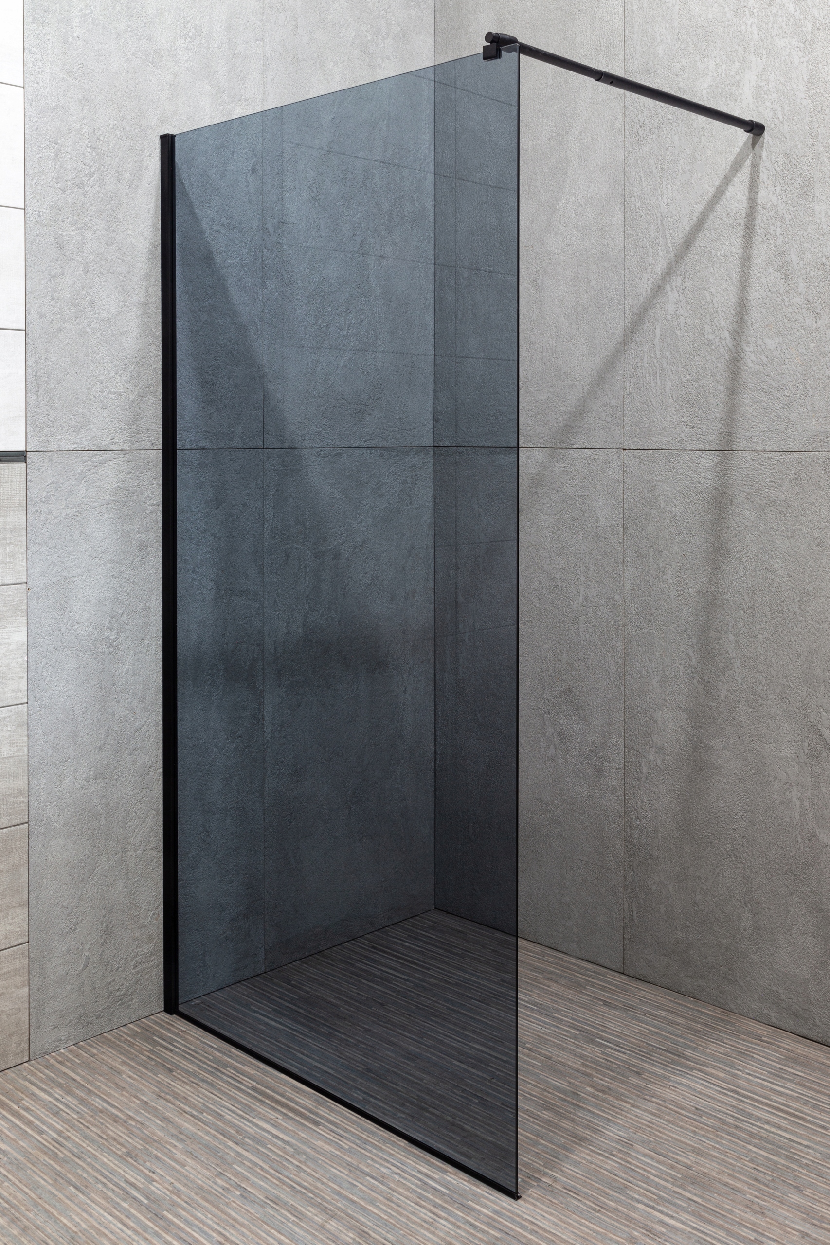 Современное душевое решение без роликов и петель. Кабину Walk in можно установить в любом углу ванной комнаты. Ширина закаленного стекла толщиной 6 мм составляет 100 см. Расстояние от стены регулируется монтажной рейкой из нержавеющей стали в диапазоне 60-100 см. Высота кабины 203 см.