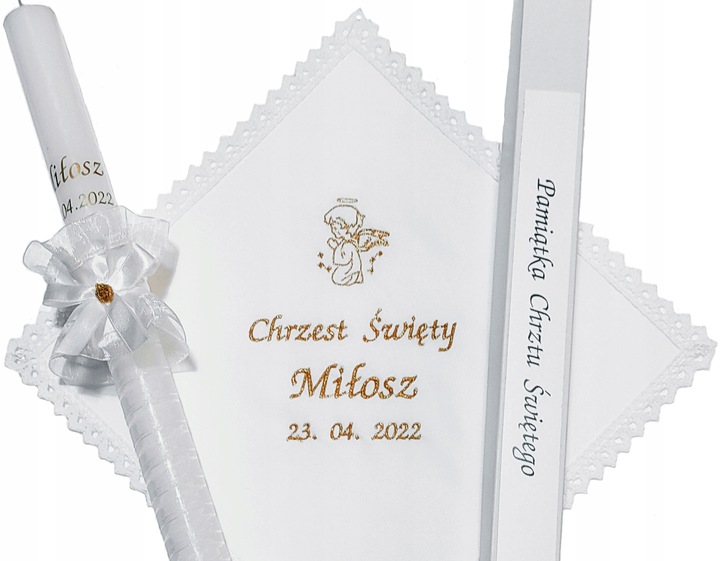 - свеча, украшенная вручную, с именем ребенка и крещения дата