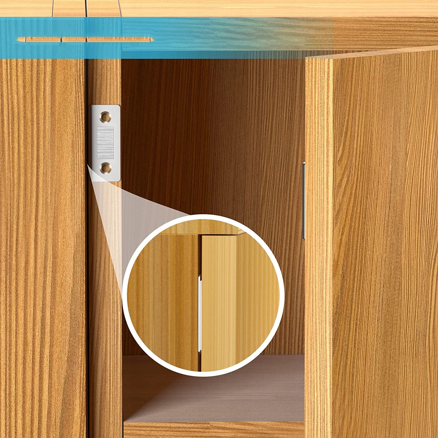 - Просто установите магнит в шкаф, не сверля отверстия для винтов с клеем. Защитите свой дорогой шкаф или дверь от повреждений. (Закройте и откройте дверцу через 12 часов, чтобы клей хорошо пристал к поверхности.)