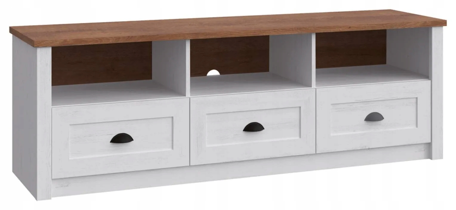 Шкаф RTV из серии Pvence оснащен тремя ящиками и тремя открытыми камерами. Это будет идеальным дополнением к внутренней композиции с оставшейся мебелью коллекции Provence.