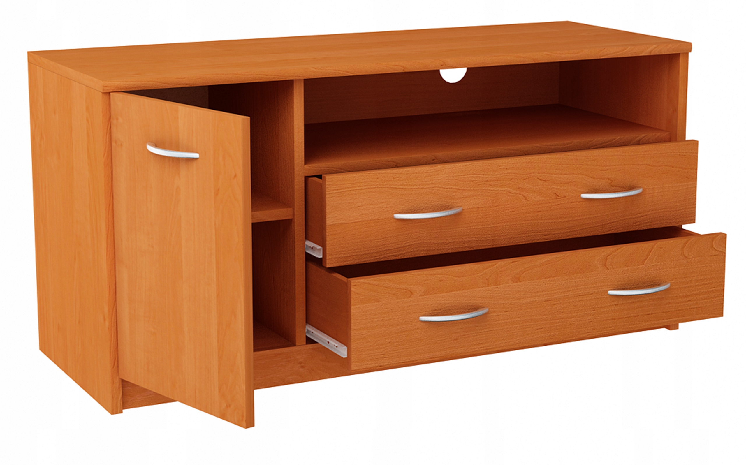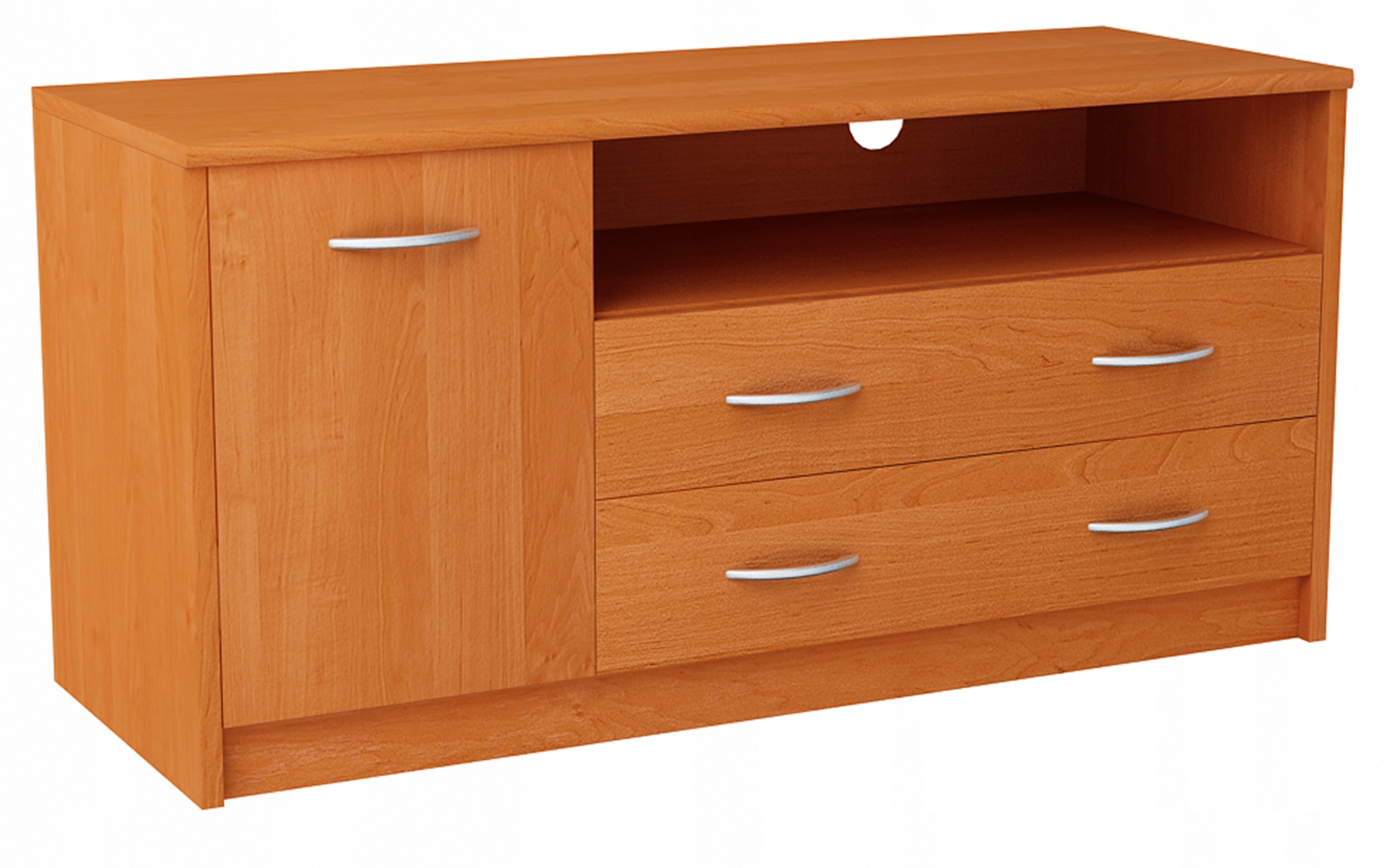 Stolik rtv 1d2s zbudowany jest z jednej szafki z półką z lewej strony oraz otwartej półki na urządzenie audio video i dwóch szuflad z prawej stj stj stj stj. P> Górny Blat Ma Zaookrągloną przednią krawędź co Dodaje Кабинет эстетического внешнего вида.