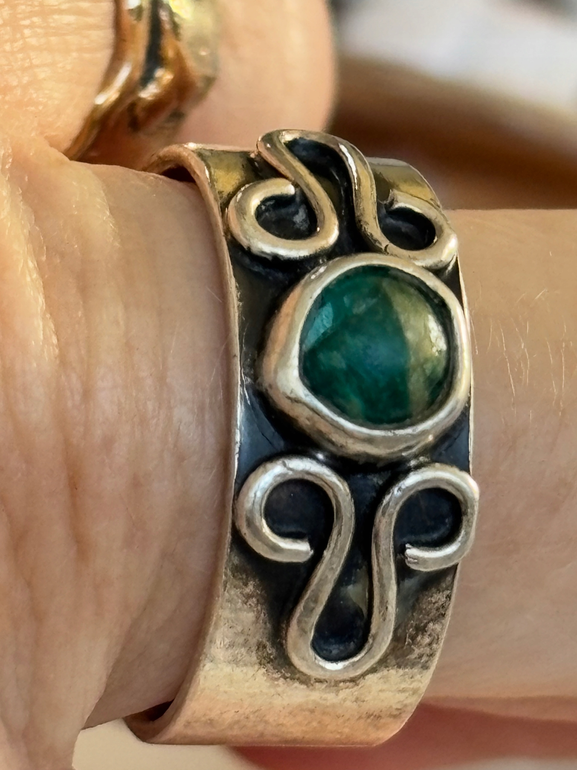 Металлоконструкция Кольцо с хризопразом М6, обручальное кольцо состаренное серебро