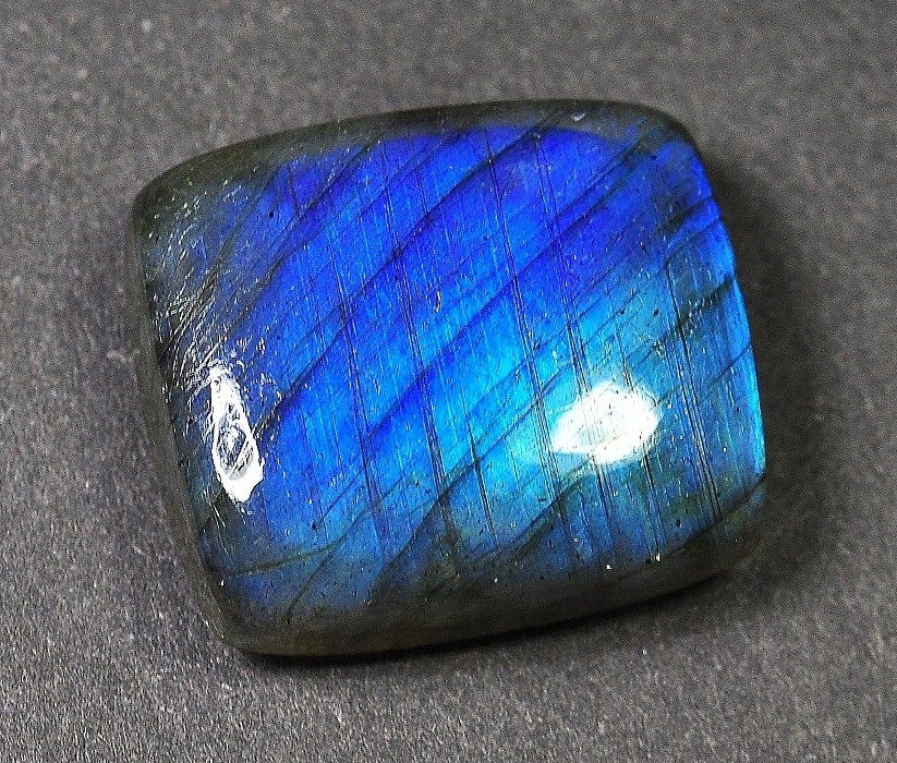 Образец лабрадора — природного камня формы кабошон для изготовления оригинальных украшений.