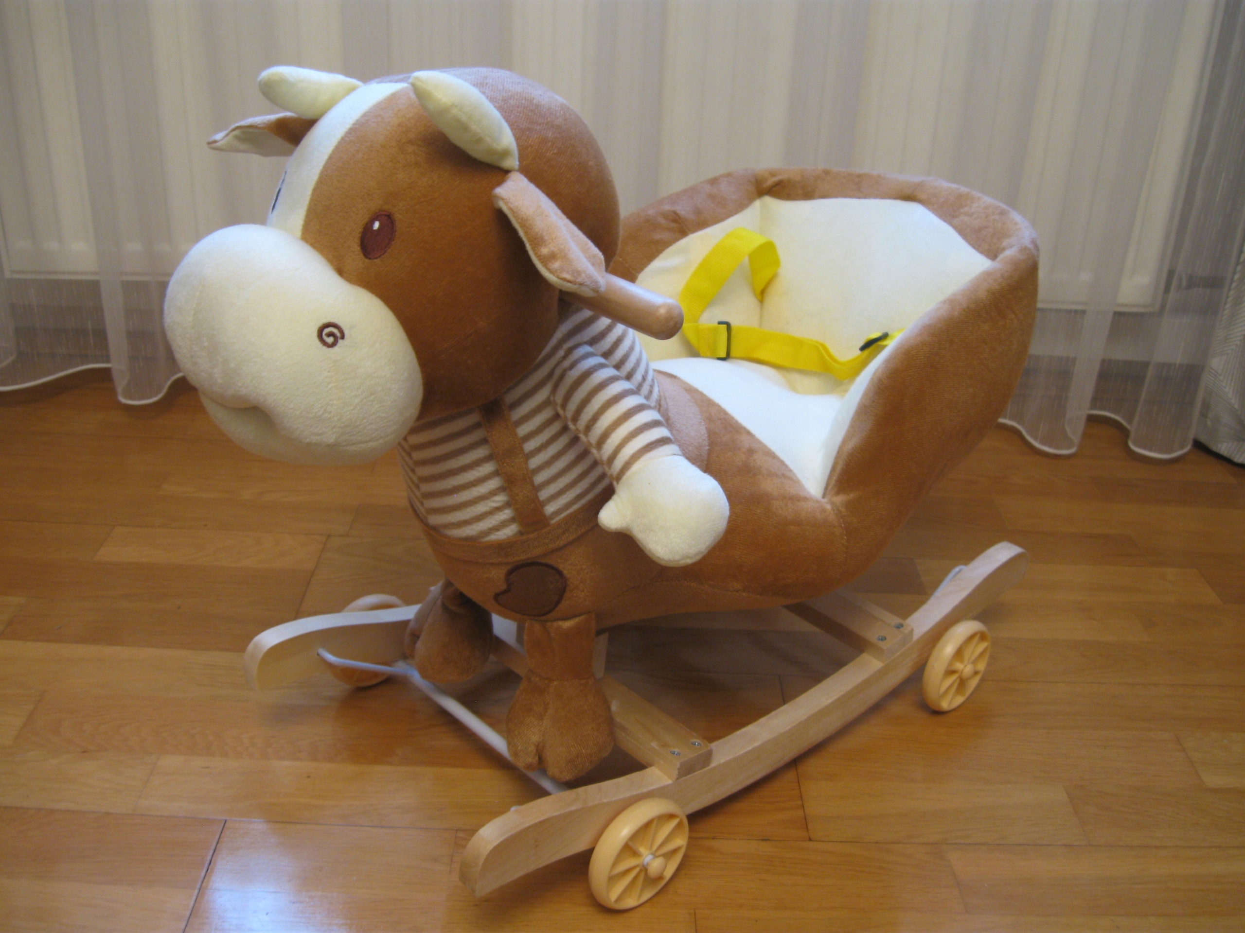 В целях безопасности качалка оснащен сиденьем с ремнем, фиксирующим малыша.От выпадения.