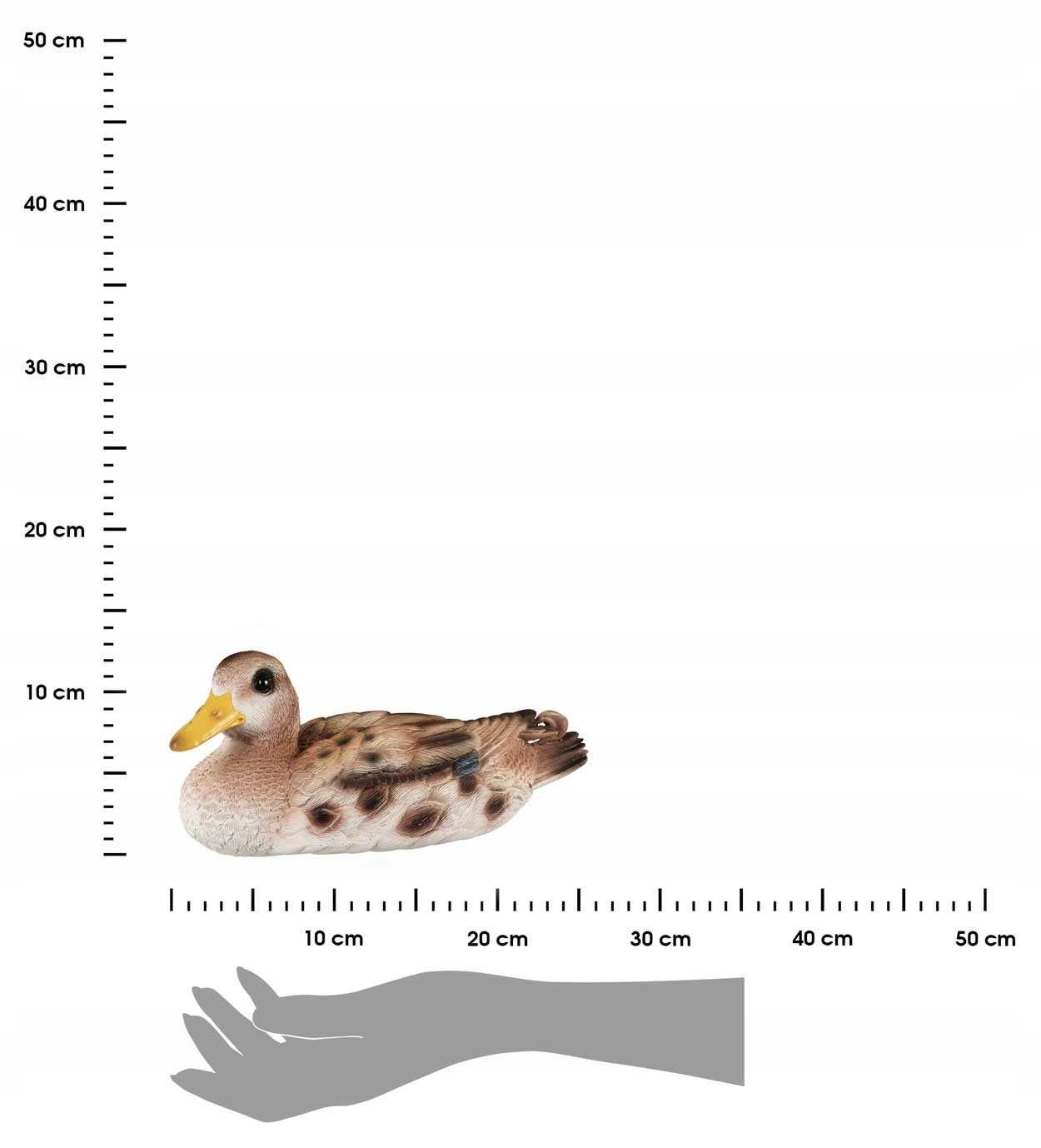 Садовая фигурка с изображением отдыхающей утки, изготовлена из полирезина (искусственной смолы), размеры: 23,5х10,5хh10 см.