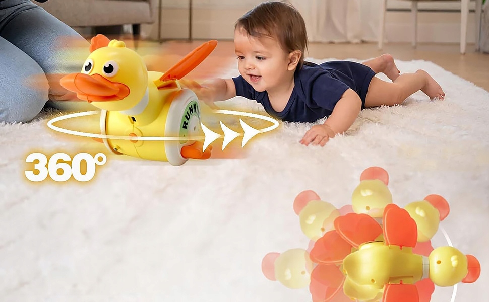 игрушки двигаются на 360° по прямой. Подвижная игрушка для ползания стимулирует глаза к поиску предметов и развивает мышцы, поддерживая ползание и развитие крупной моторики у детей в возрасте 6-8-9-10-12 месяцев. Это помогает им быстро освоить различные двигательные навыки, такие как перекатывание, ползание и ходьба.