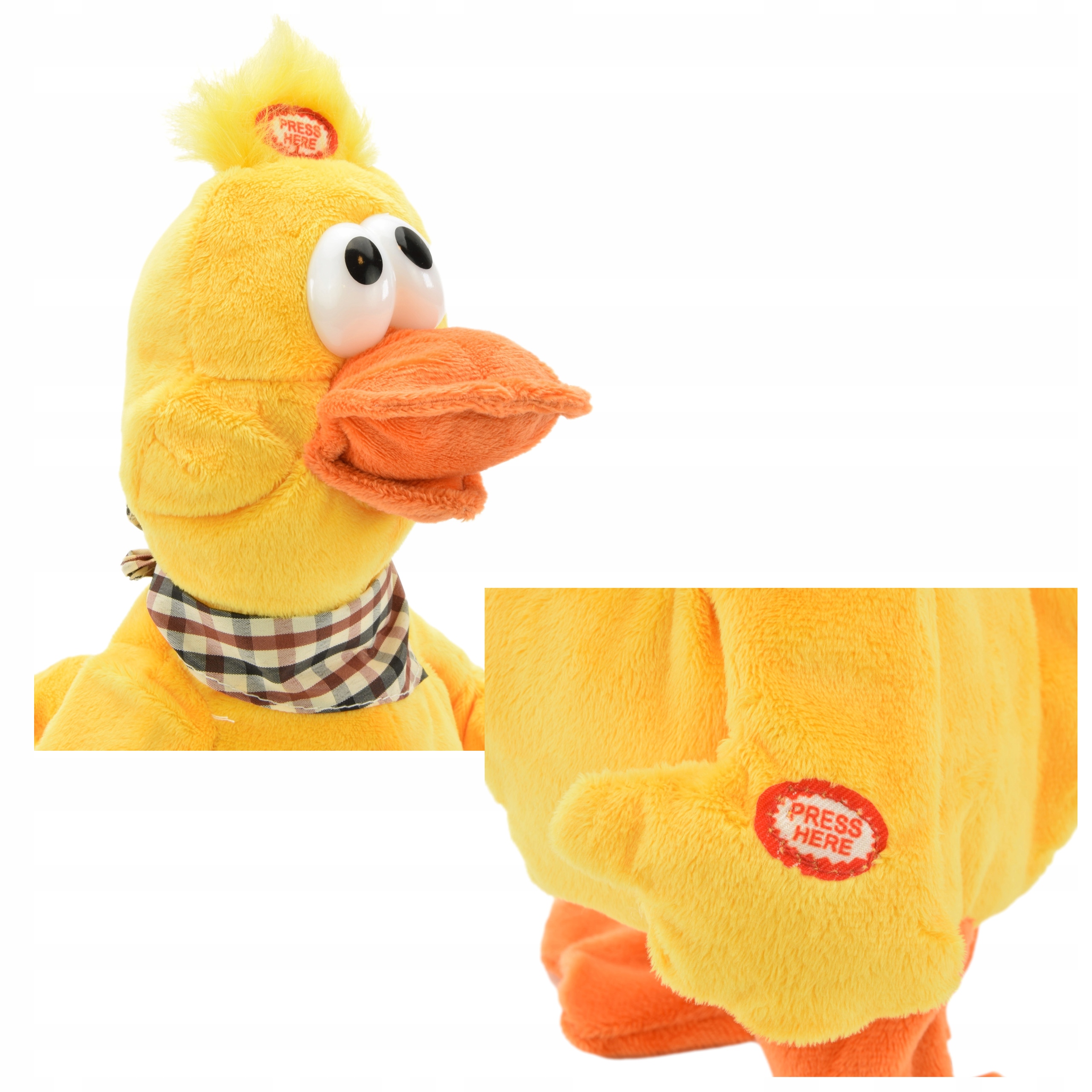 ✔️ Интерактивная утка, когда вы берете ее за голову или шею, начинает крякать и шевелить крыльями и хвостом, а когда вы кладете ее на землю, она начинает танцевать и двигая крыльями, головой и хвостом в ритме музыки
