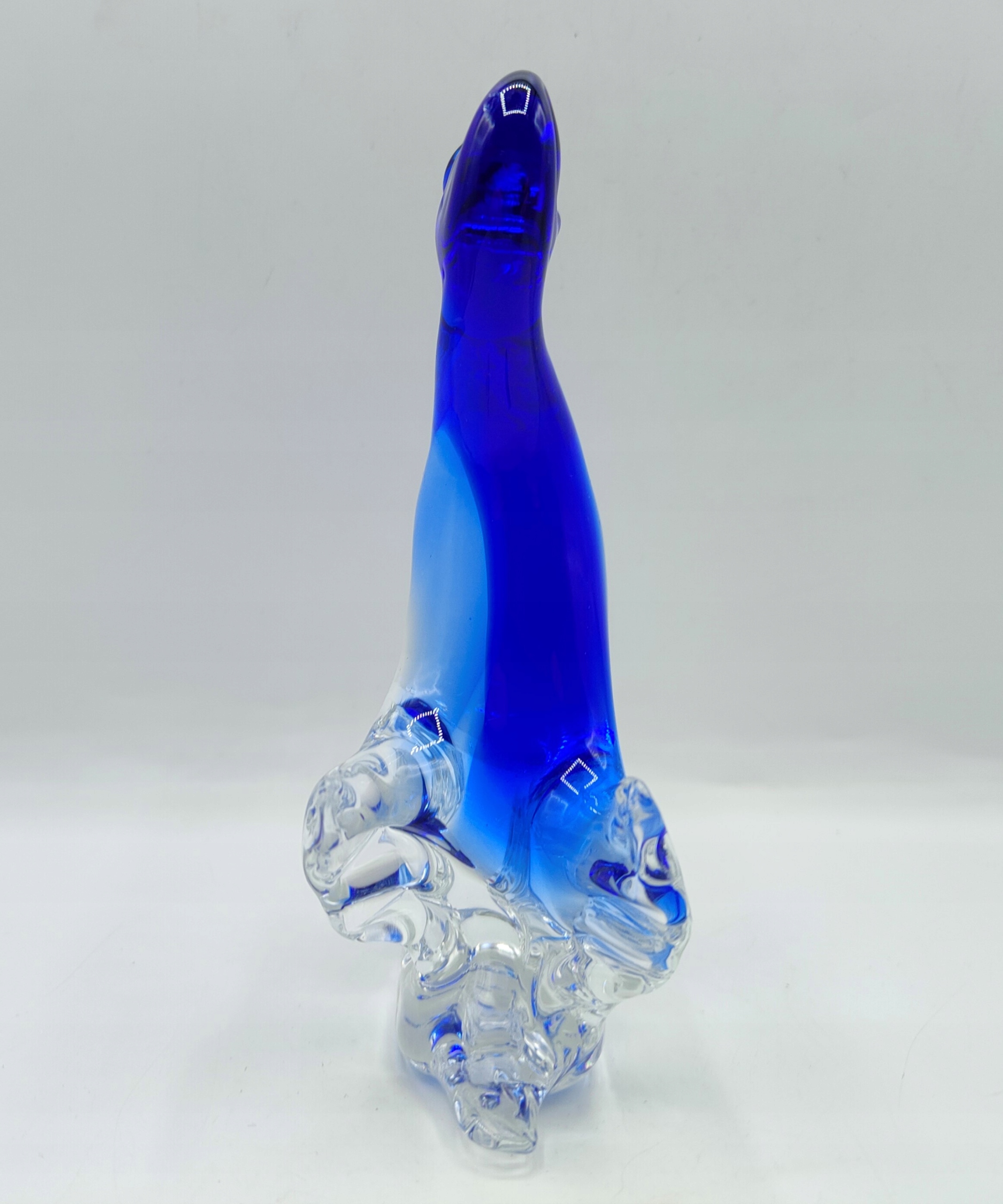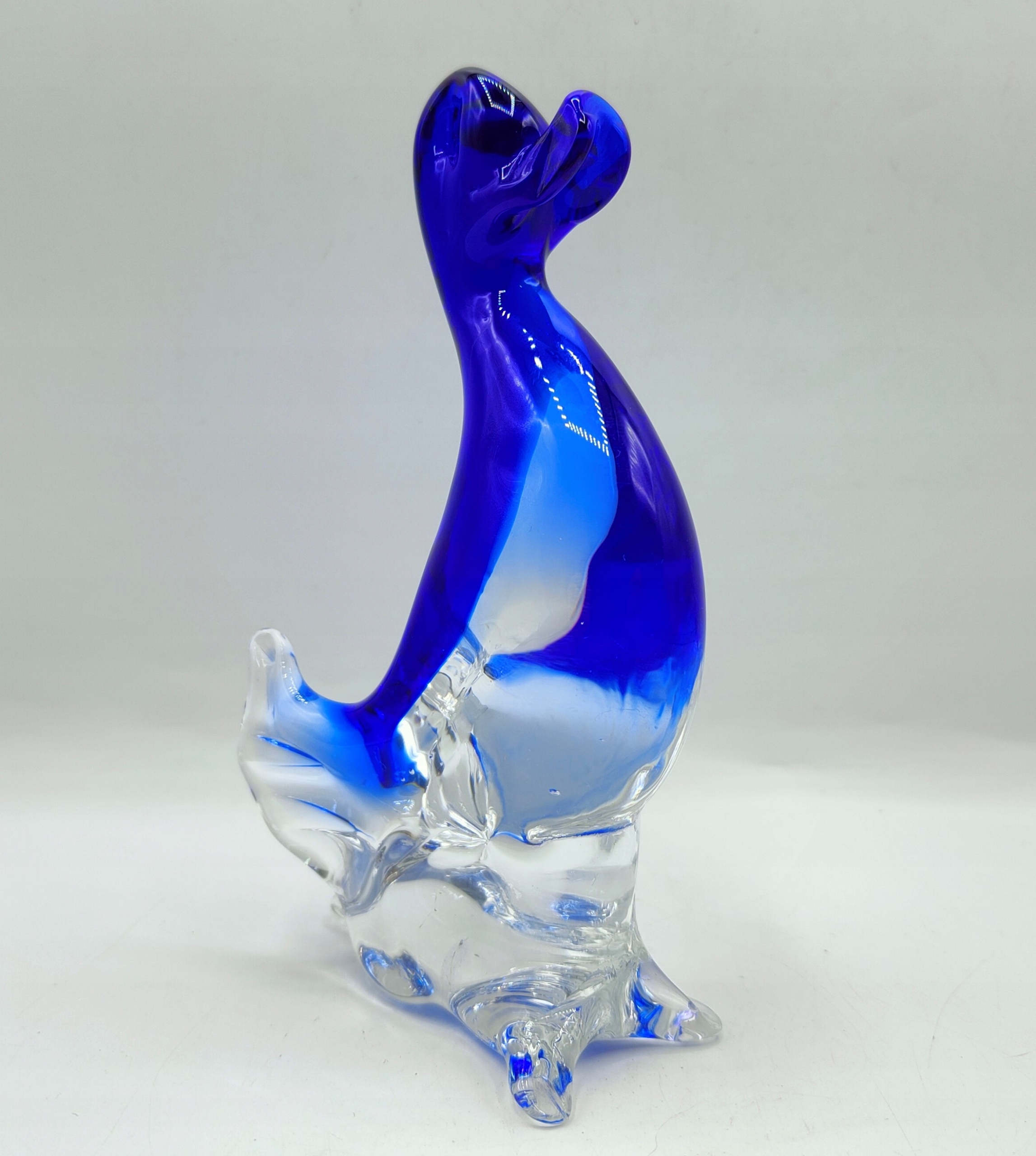 Изготовлено из стекла. Красивые цвета. Размеры: 15см/8,3см/5,3см, стекло очень толстое, прочное, весит более 380 грамм. Красивая статуэтка не имеет повреждений. Коллекционный. Рекомендую!