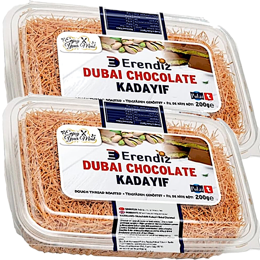 kadayif cake (katifi) - это тонкие нити пирогов фило с легкой и хрустящей текстурой. Продукт уже запечен и готов к употреблению - не требует дальнейшей термообработки. Его нейтральный вкус идеально сочетается с сладкими и солеными добавками. Dubai Chocolate заполнен хрустящими нитями Kadayif