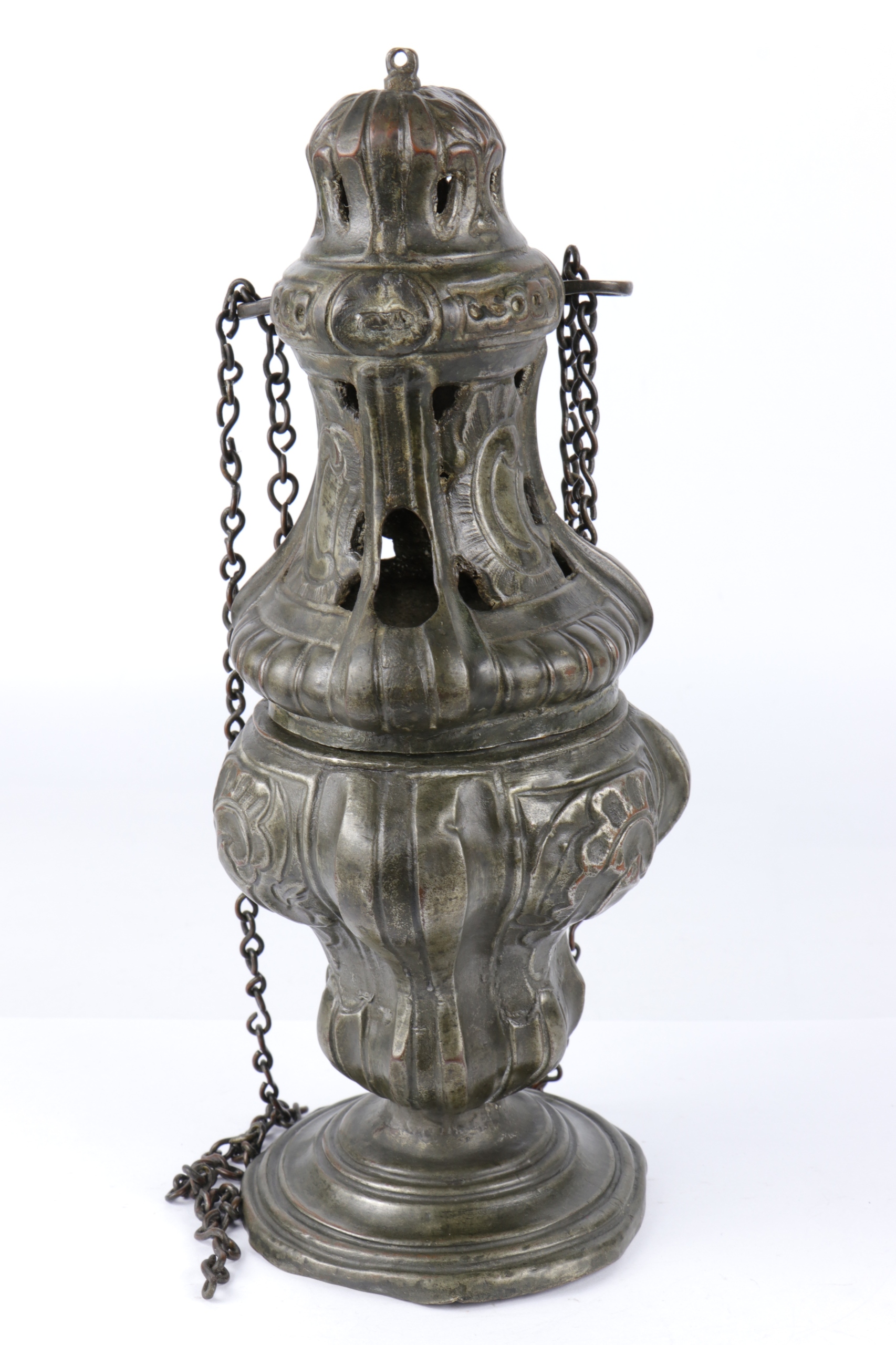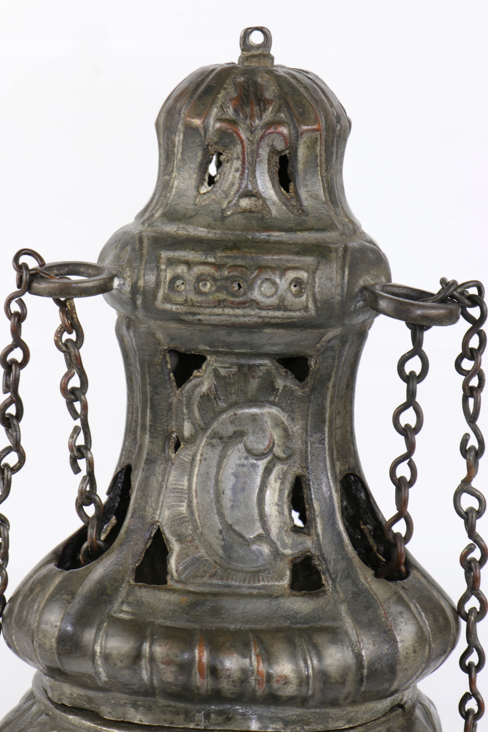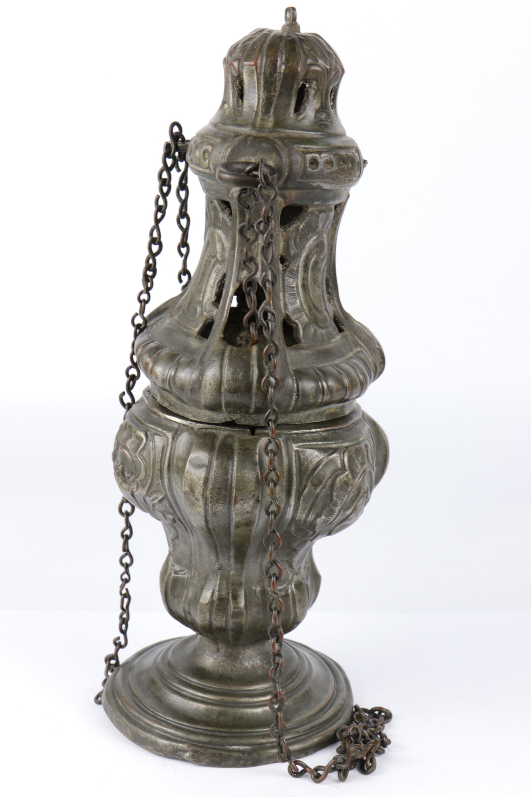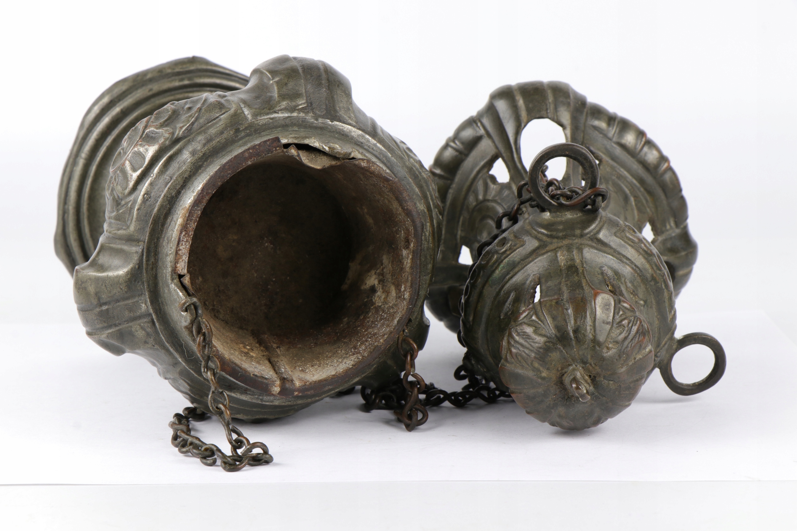 Интересная, очень старая кадильница. Отлит из металлического сплава с посеребренным покрытием. Кадило в стиле барокко XVIII века с очень красивым орнаментом в стиле рококо.