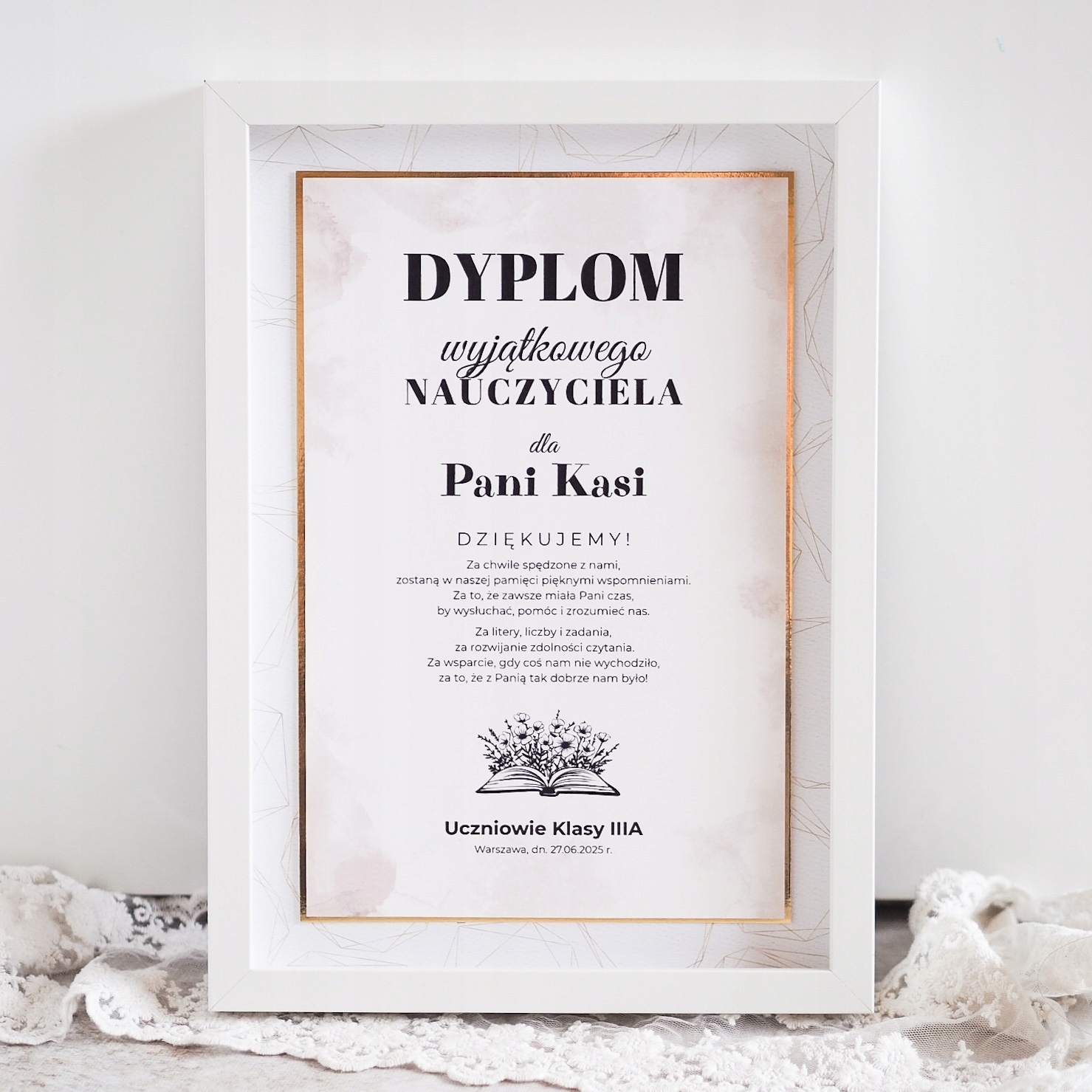 Рамка спасибо за подарок для получения диплома учителя