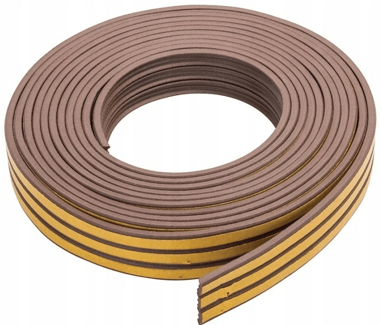 САМОКЛЕЯЩИЙСЯ ОКОННЫЙ УПЛОТНИТЕЛЬ 6М коричневый Е профиль Scley для дверей и других проемов внутри и снаружи помещения, прочная клеевая основа обеспечивает хорошее сцепление уплотнителя с поверхностью