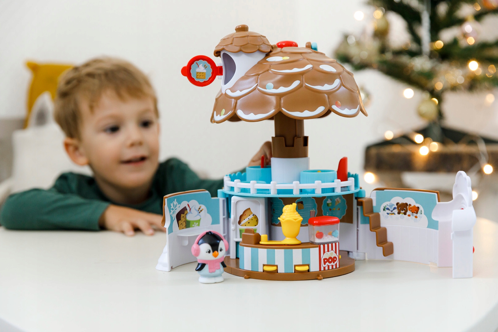 В комплект «Кабинет-мороженое Szyszka» входят: складное кафе-мороженое, животное (пингвин), мороженое и два кресла. Игрушка для детей от 18 мес.