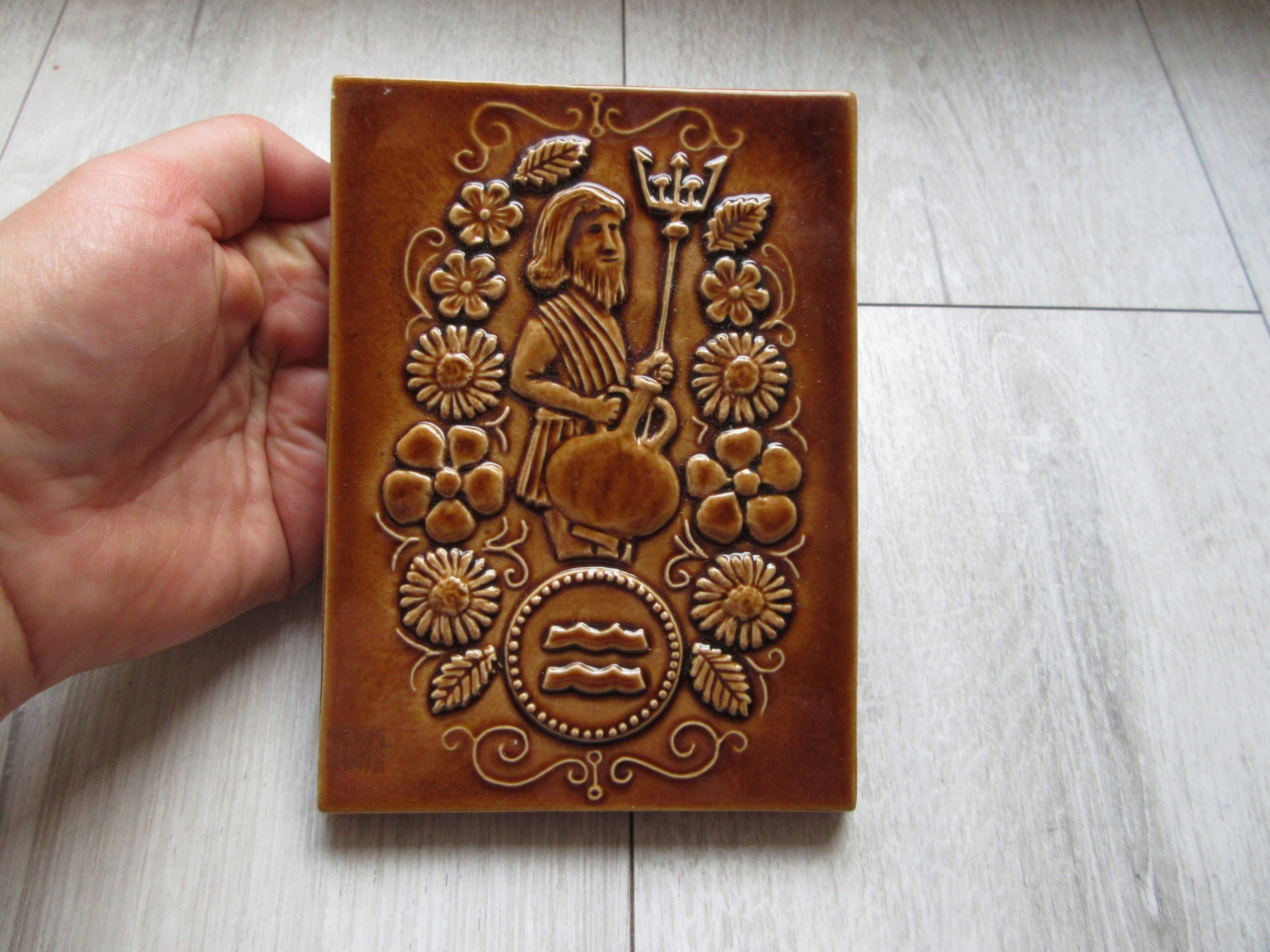 KAFEL OZDOBNY JIE GANTOFA SWEDEN KWIATY I BÓG MORZA 11X15
